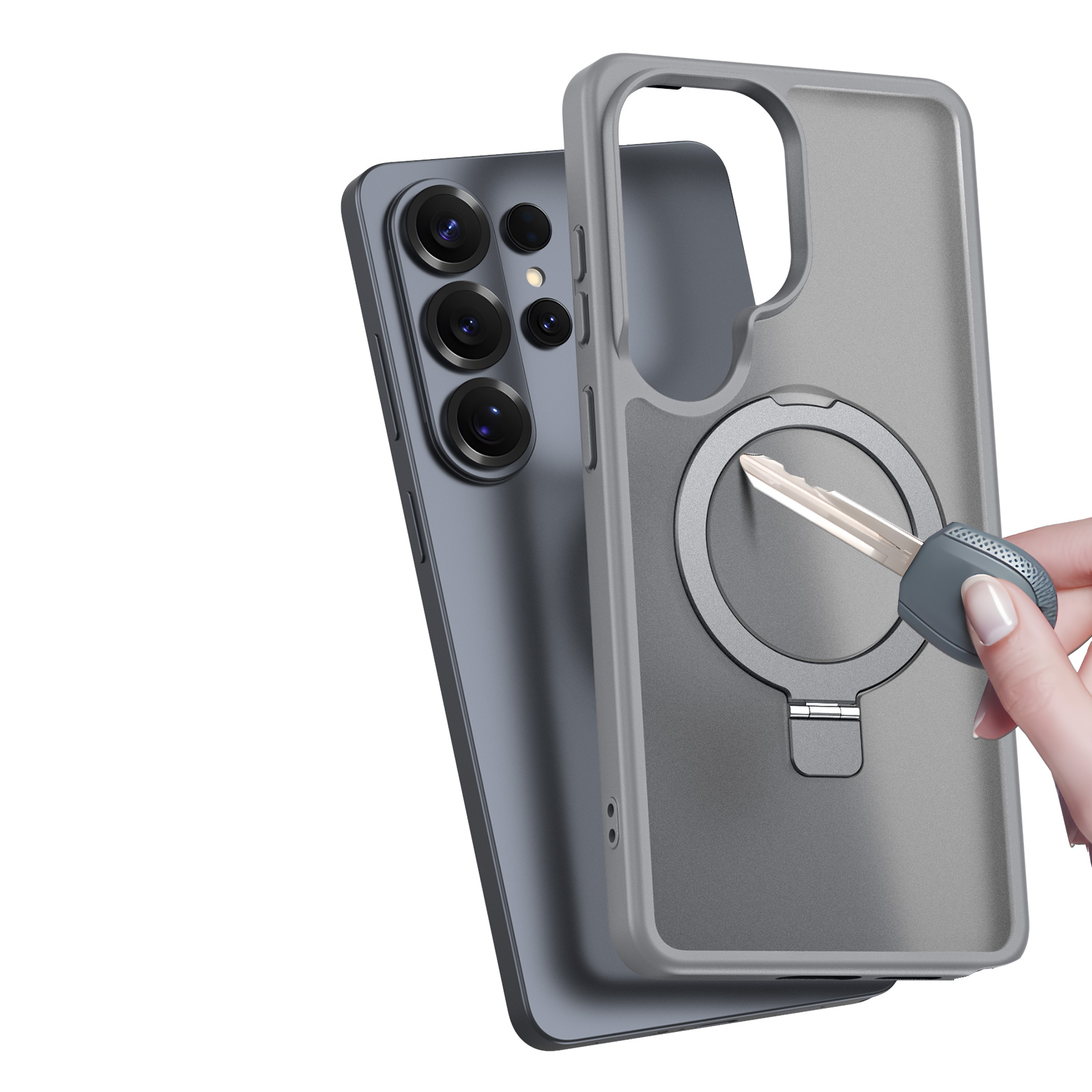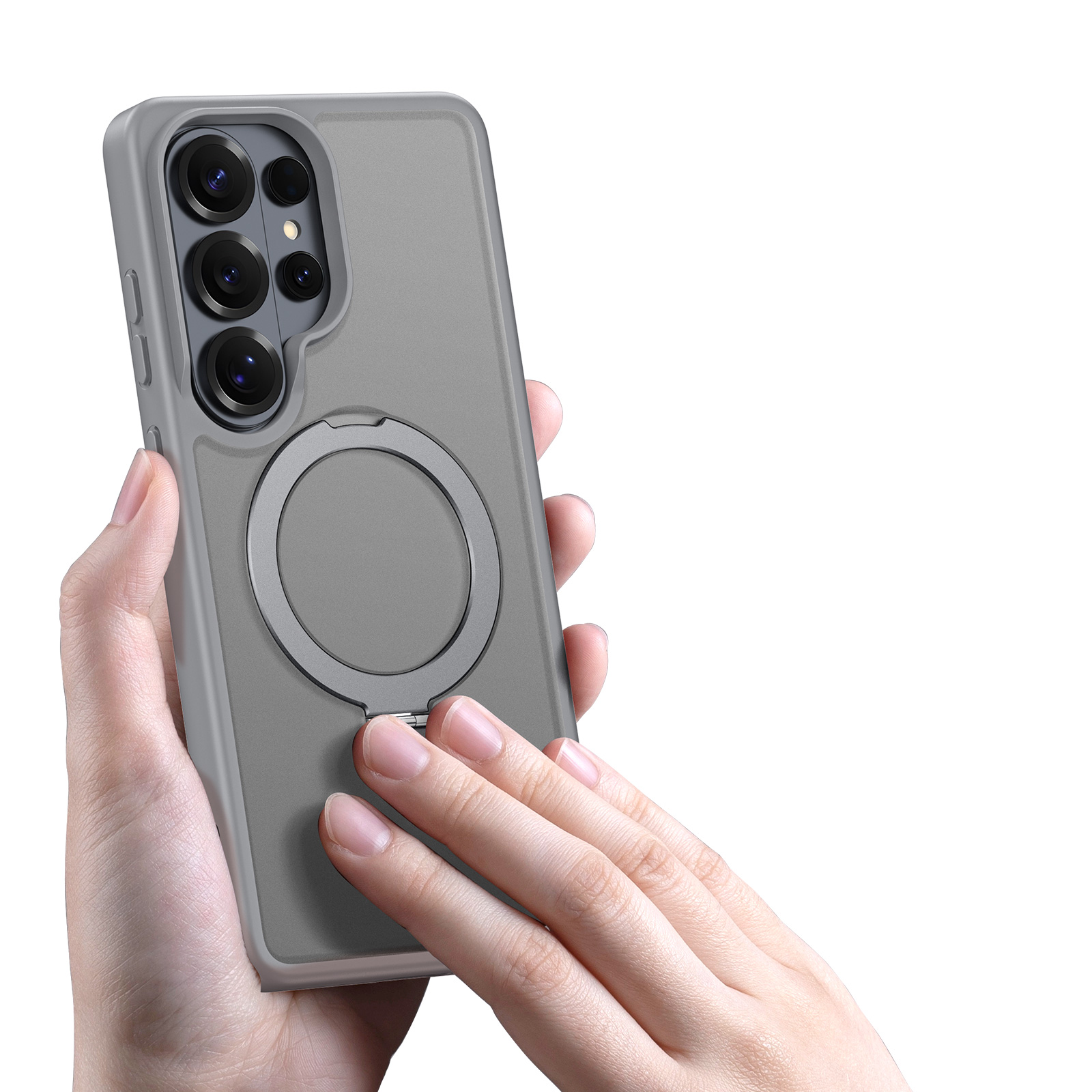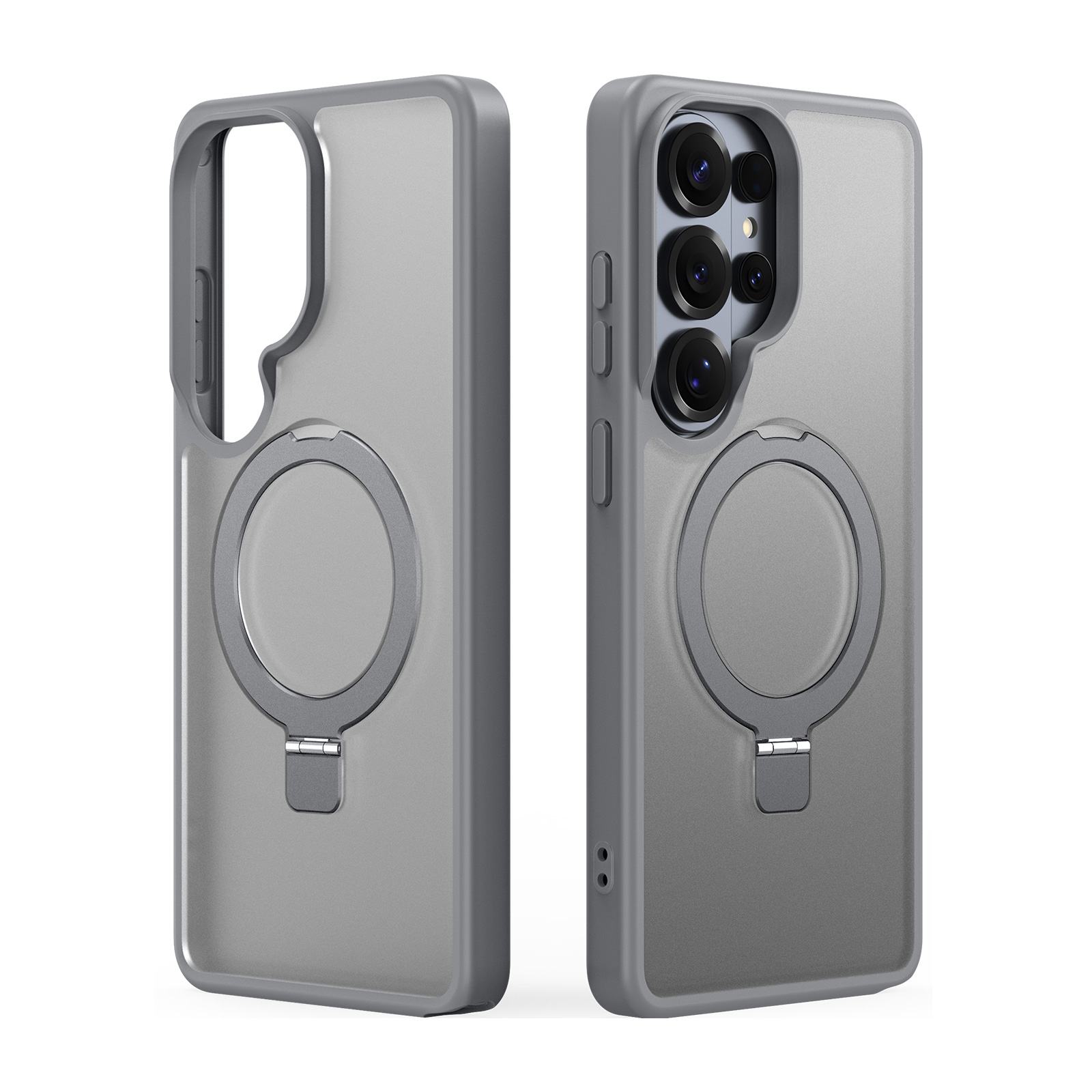 Серый матовый чехол с поддержкой MagSafe для Samsung Galaxy S26 Ultra из серии Yind Series Case от Dux Ducis - это стильный и функциональный аксессуар, сочетающий в себе защиту и современные технологии. Чехол выполнен из качественного материала с матовой текстурой, которая не только приятна на ощупь, но и надежно защищает смартфон от царапин и повреждений. Нейтральный серый цвет придает изделию классический и сдержанный вид, подходящий для любого образа. Технология MagSafe обеспечивает быстрое и удобное подключение беспроводных зарядных устройств и аксессуаров, повышая комфорт использования смартфона. Встроенная магнитная откидная подставка позволяет удобно устанавливать телефон в горизонтальном положении, что идеально подходит для просмотра видео, чтения или работы с приложениями. Специальный вырез в нижней части чехла облегчает доступ к разъемам и кнопкам, сохраняя при этом защиту корпуса устройства. Этот чехол станет отличным выбором для тех, кто ценит сочетание надежной защиты, современных технологий и элегантного дизайна.