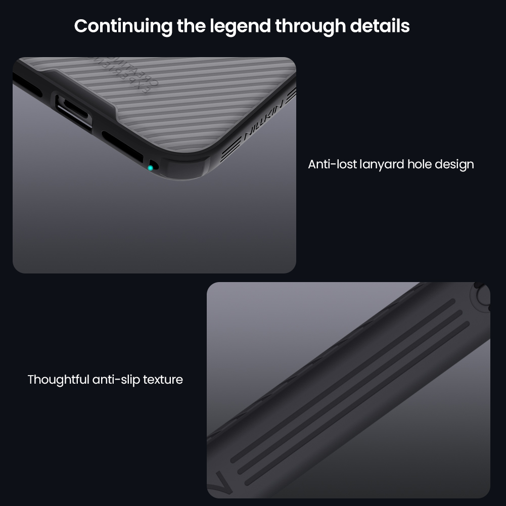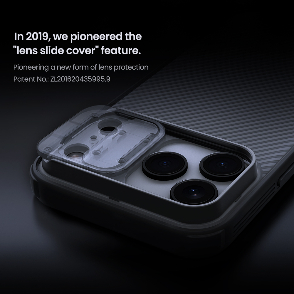 Обновлённая версия сдвижной шторки с учетом особенностей Айфон 17 Про Макс! Противоударный чехол прозрачный тонированный (Transparent black) с защитной шторкой задней камеры от Nillkin серии CamShield Pro Case для телефона iPhone 17 Pro Max создан для любителей активного отдыха.