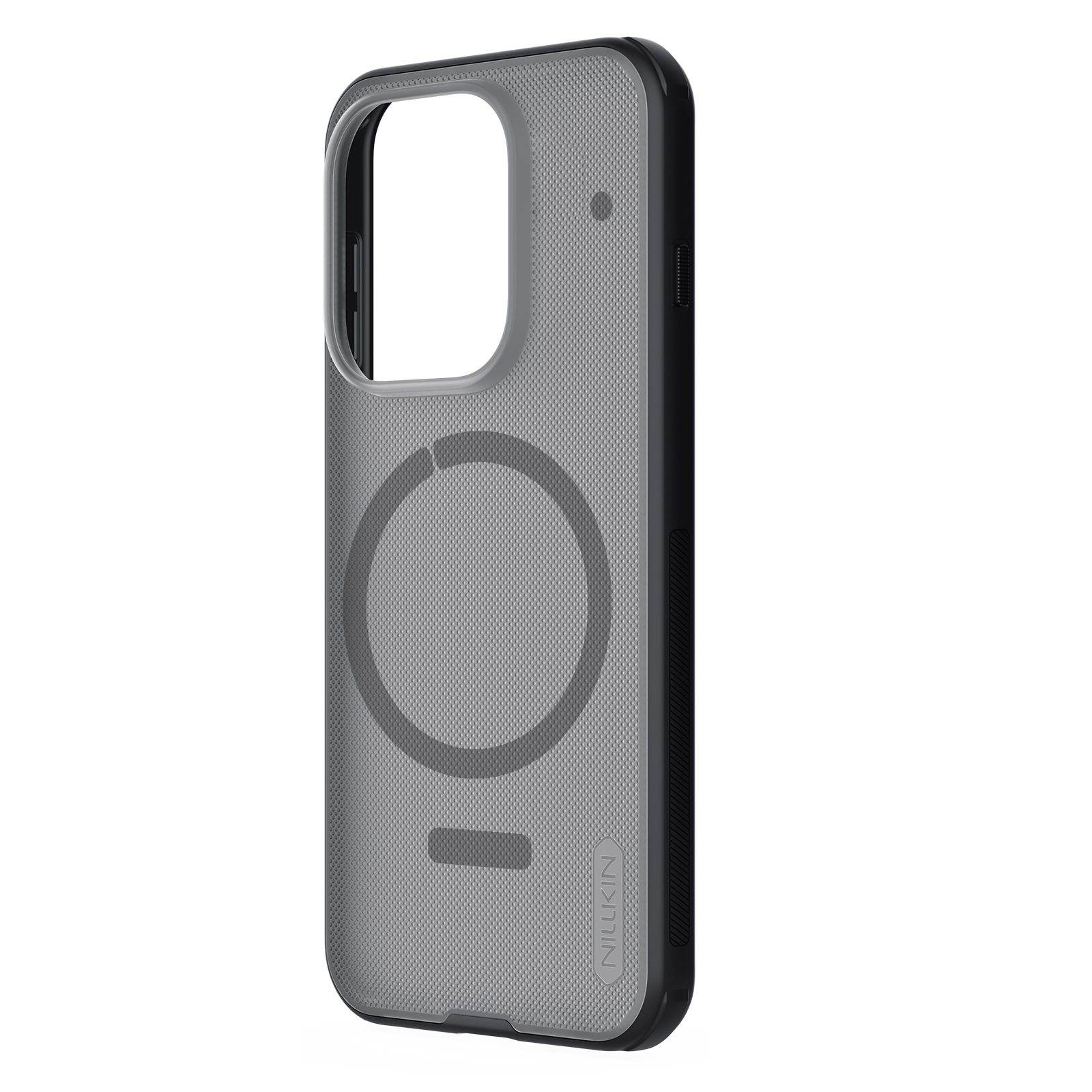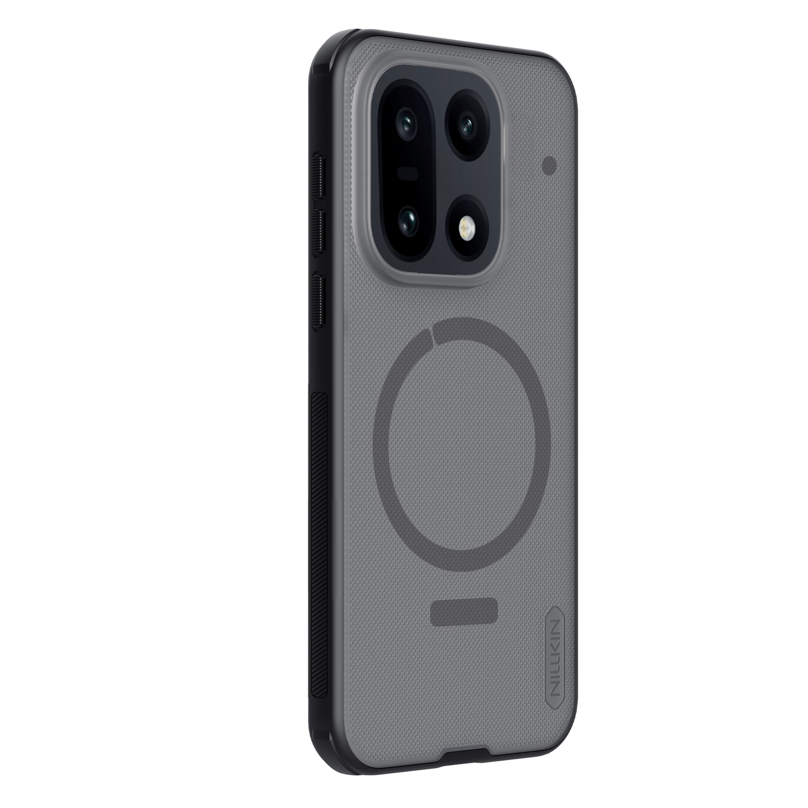 Защитный чехол прозрачный тонированный (Transparent black) от Nillkin серии Super Frosted Shield Pro Magnetic (Clear version) для смартфона OnePlus 15 с усиленными боковыми рамками по четырем углам и поддержкой зарядки MagSafe, изготавливается из экологичных материалов PC и TPU путем высокоточного литья под давление с высокой температурой.
