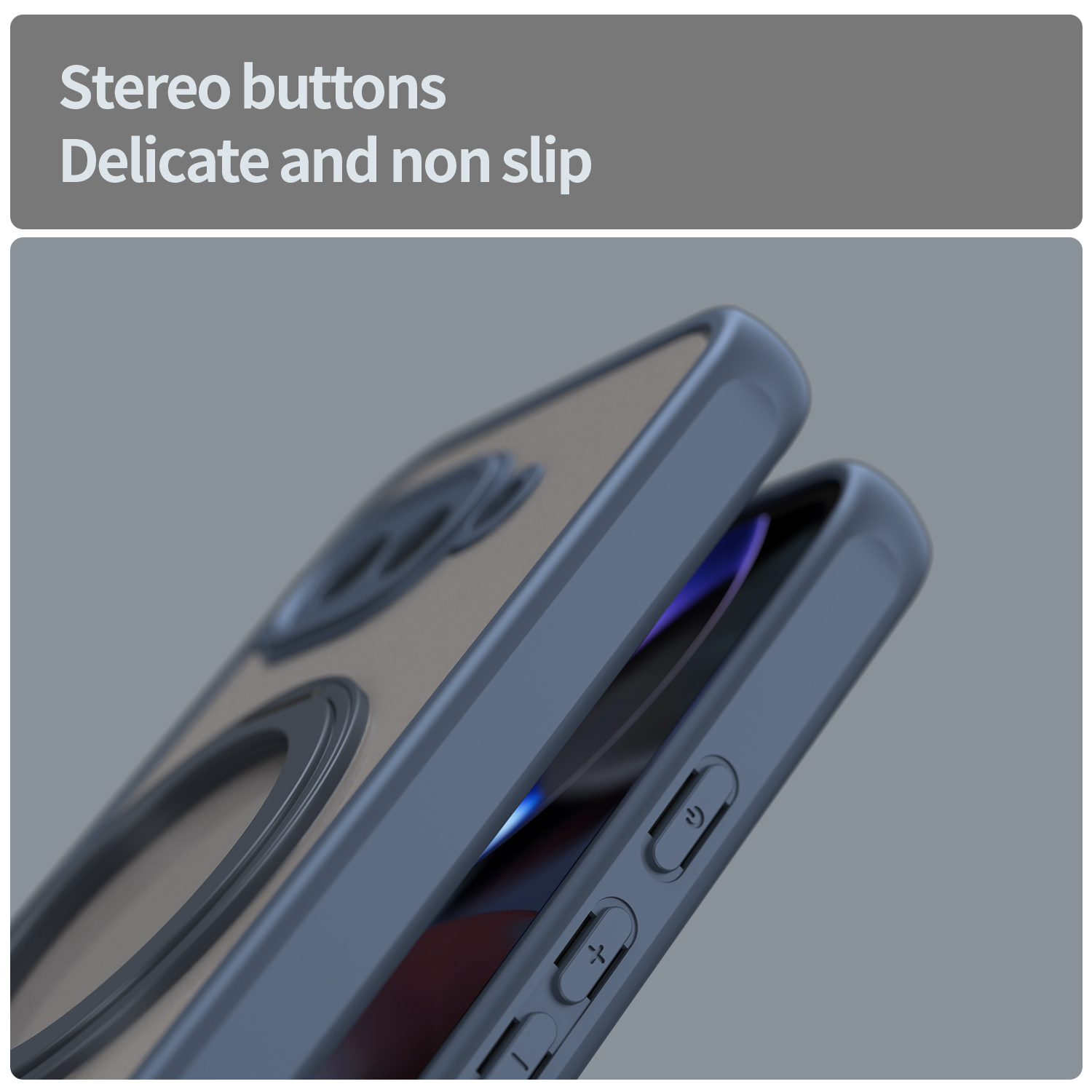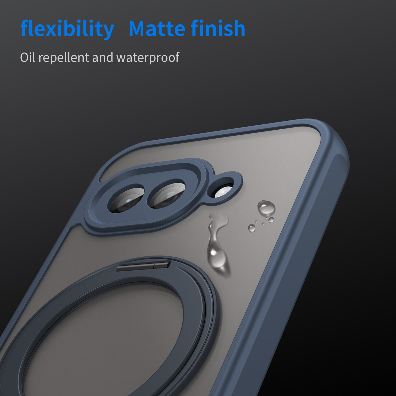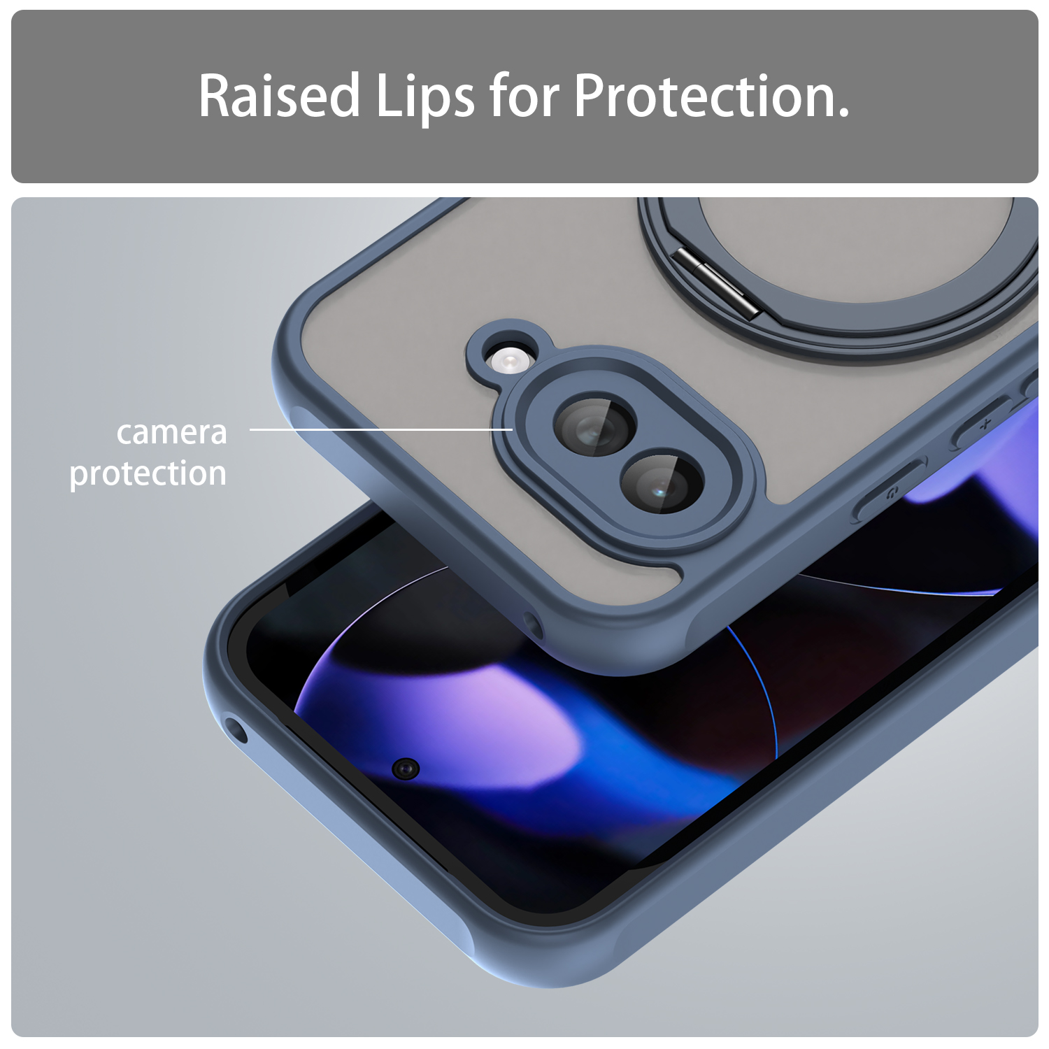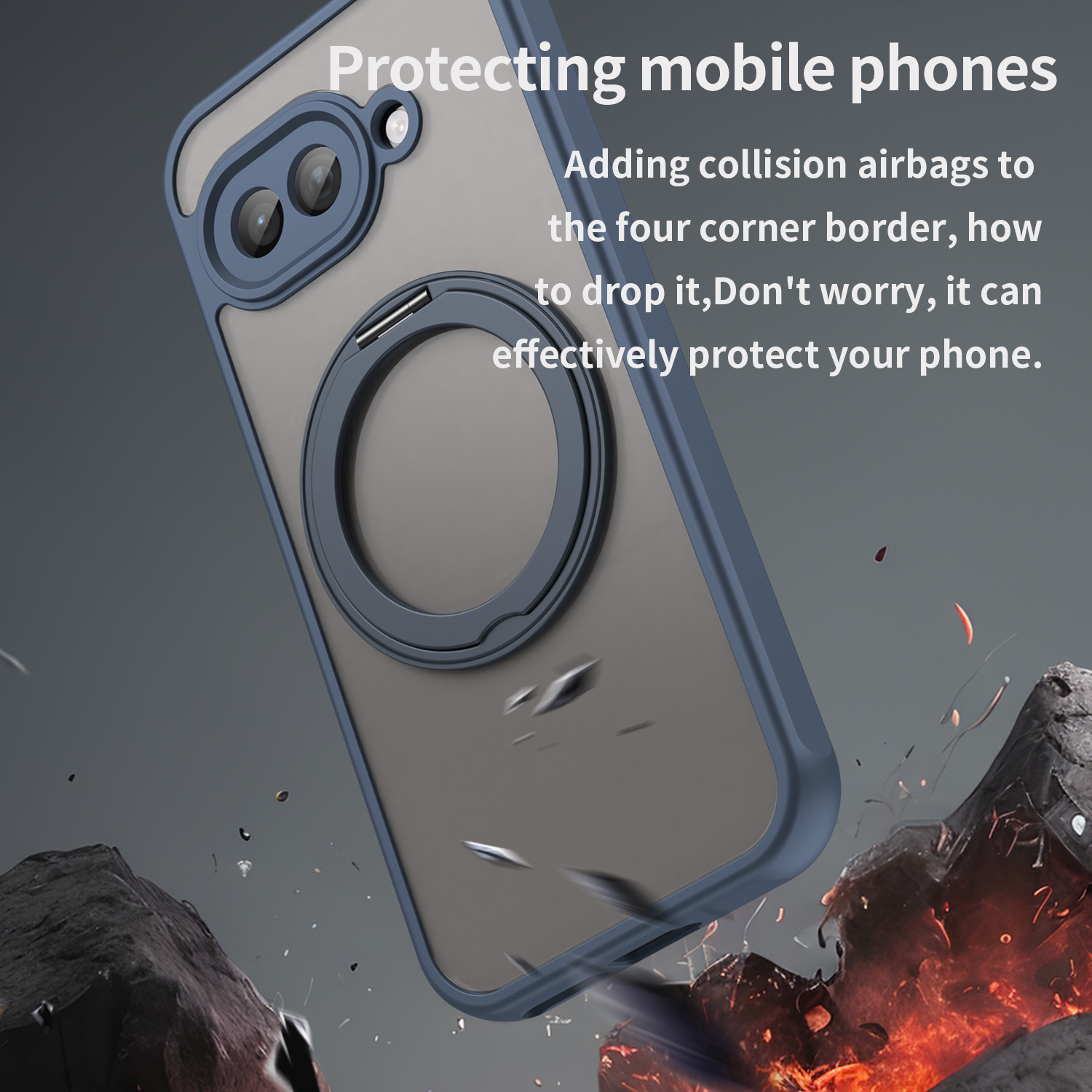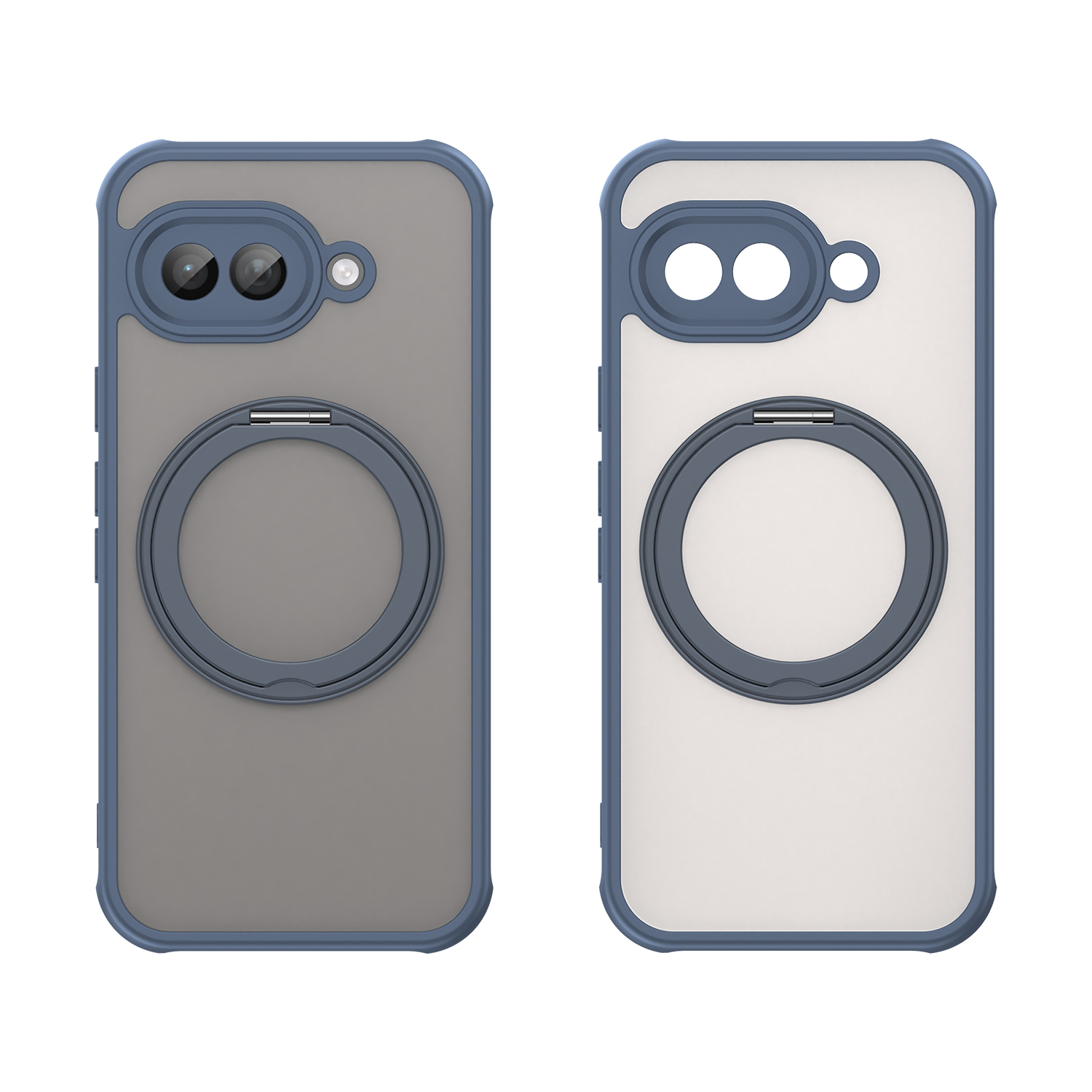 Усиленный матовый чехол синего цвета с поворотным на 360 градусов магнитным кольцом для смартфона Google Pixel 9a изготавливается из экологичных материалов путем высокоточного литья под давление с высокой температурой. Задняя стенка матовая, боковые рамки мягкие защитные синего цвета. Чехол подставка для Гугл Пиксель 9а дополняется магнитным кольцом, которое можно использовать как подставка или как держатель с аксессуарами MagSafe.