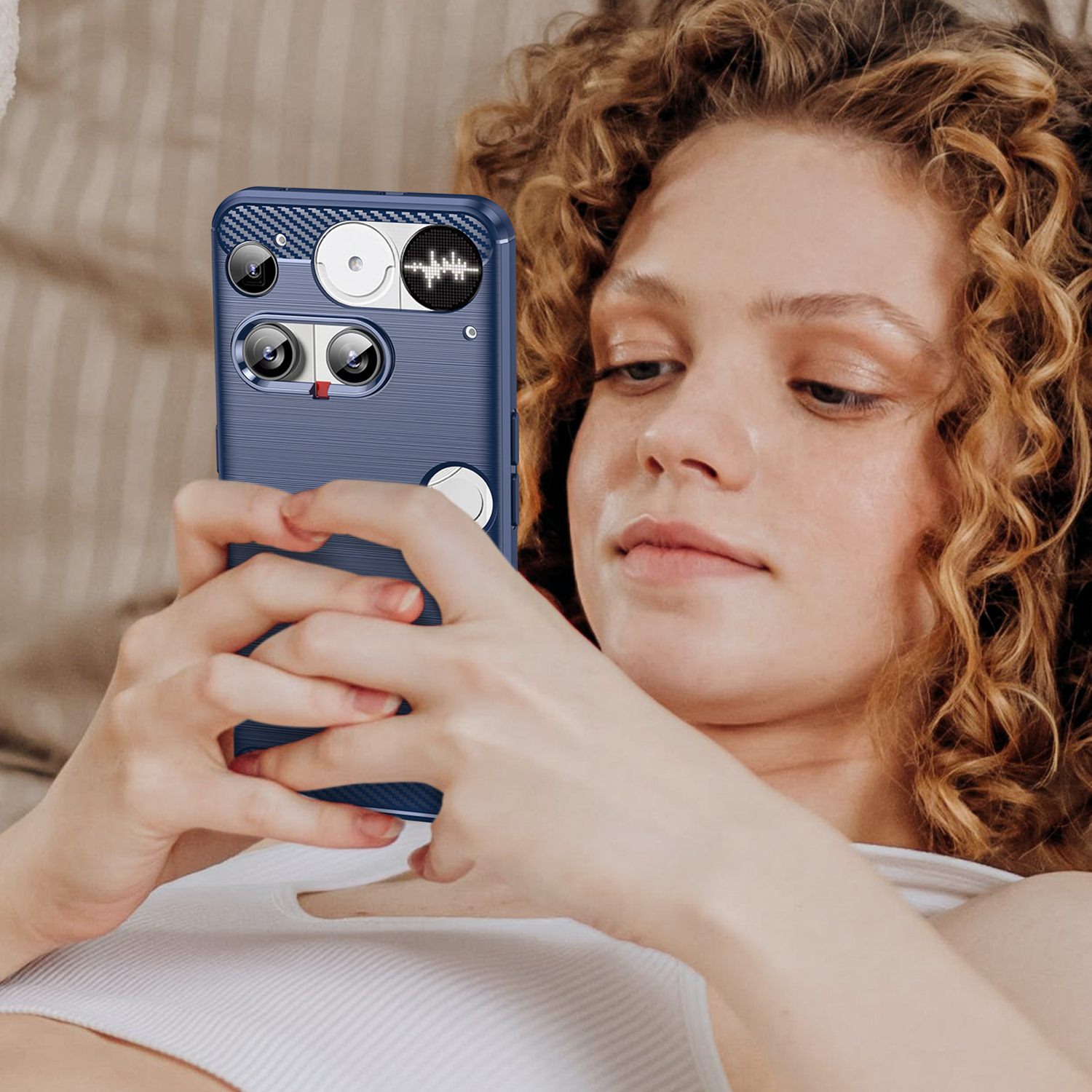 Мягкий защитный чехол-бампер синего цвета на смартфона Nothing Phone 3 от Caseport, серия Carbon