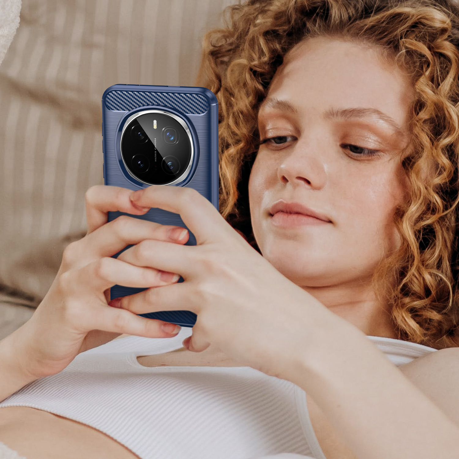 Мягкий чехол-бампер синего цвета на смартфона Honor Magic 7 Pro от Caseport, серия Carbon