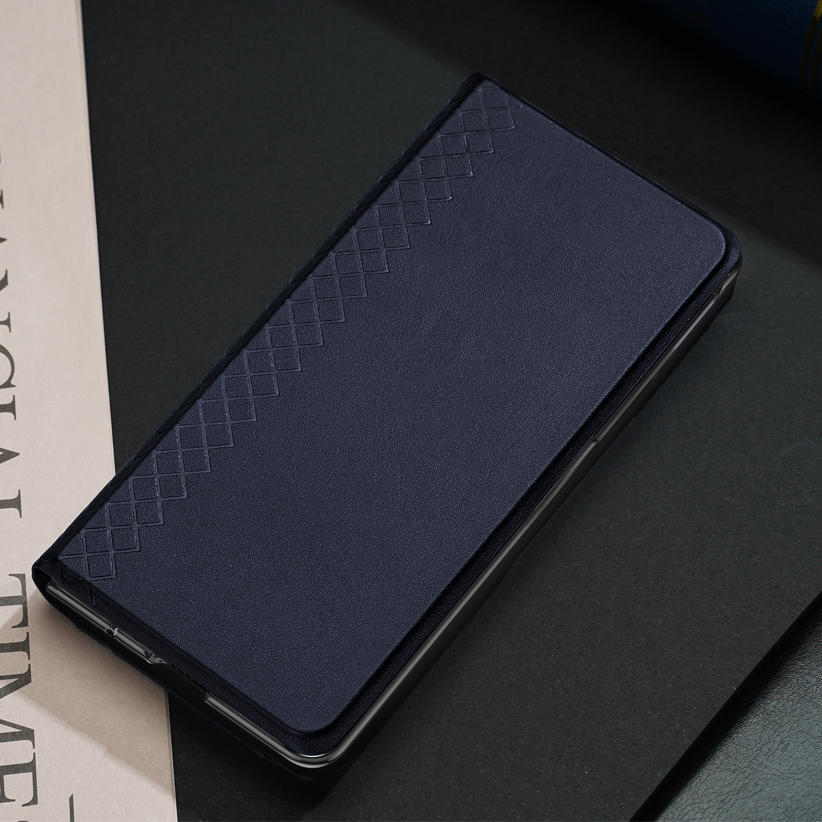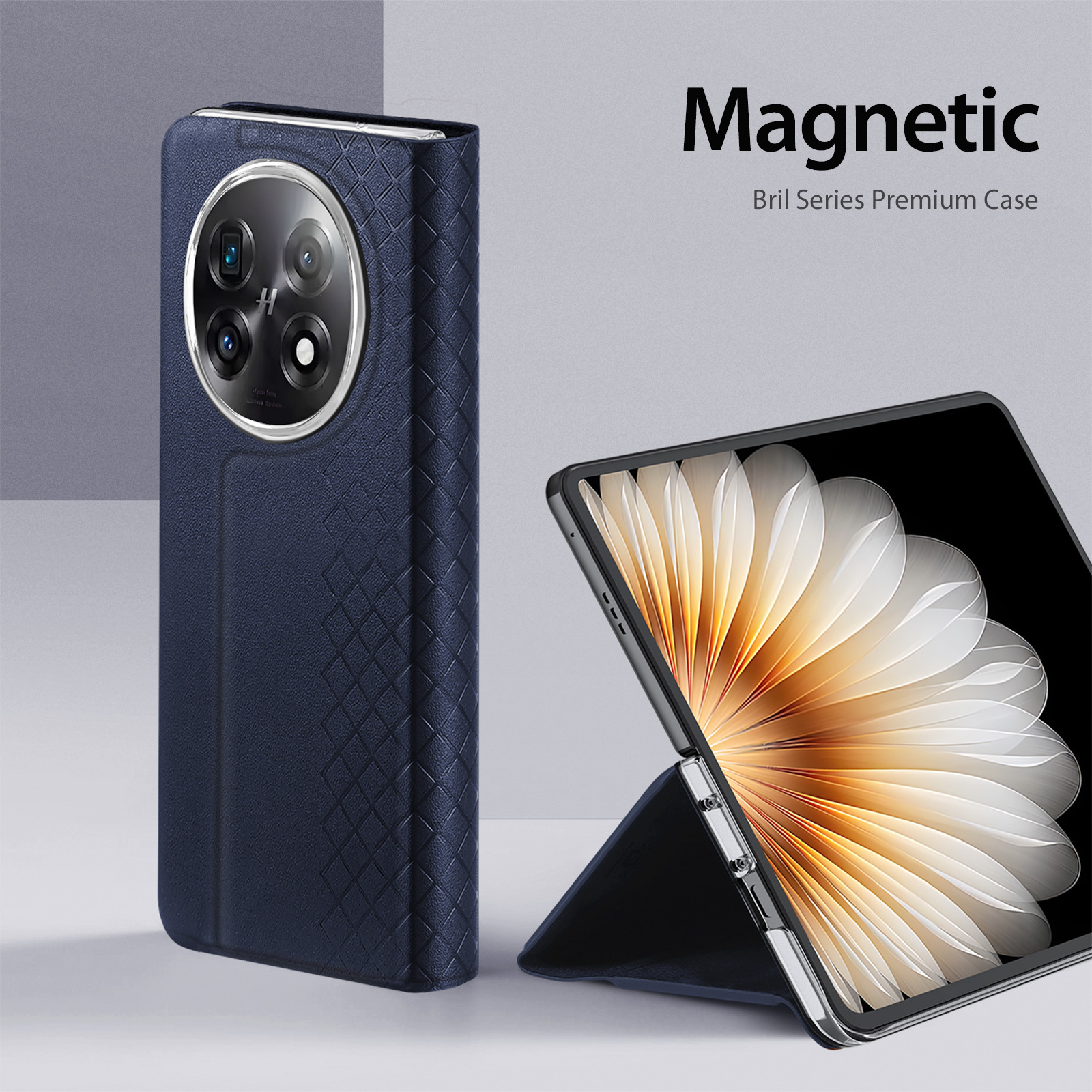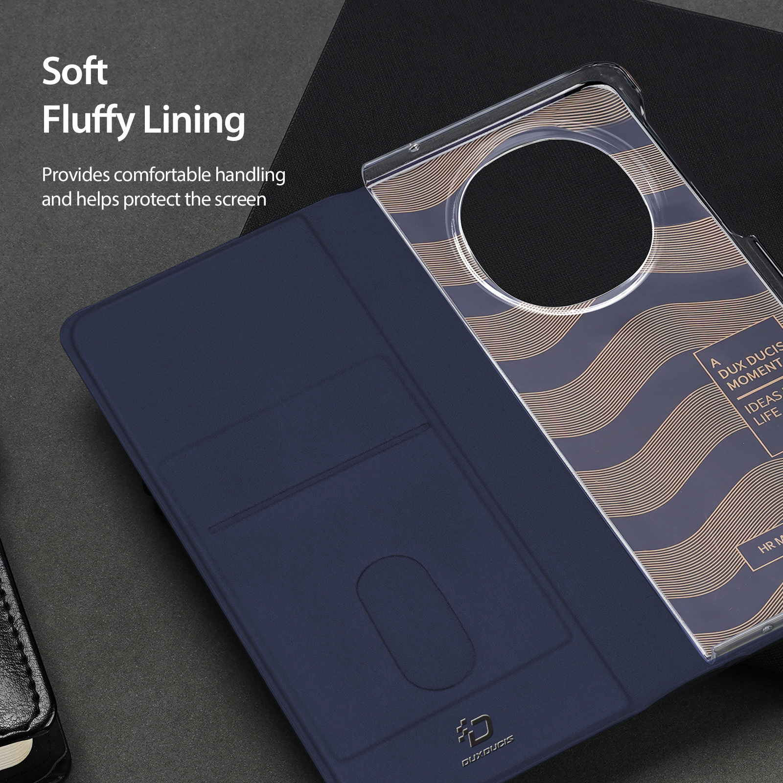 Чехол синего цвета покрытый премиальной искусственной кожи от Dux Ducis для OPPO Find N5, серия Bril Series Case. Искусственная кожа с твердой крышкой делает захват и посадку идеальными для складного телефона, такой гладкий и тонкий дизайн обеспечивает удобное использование.