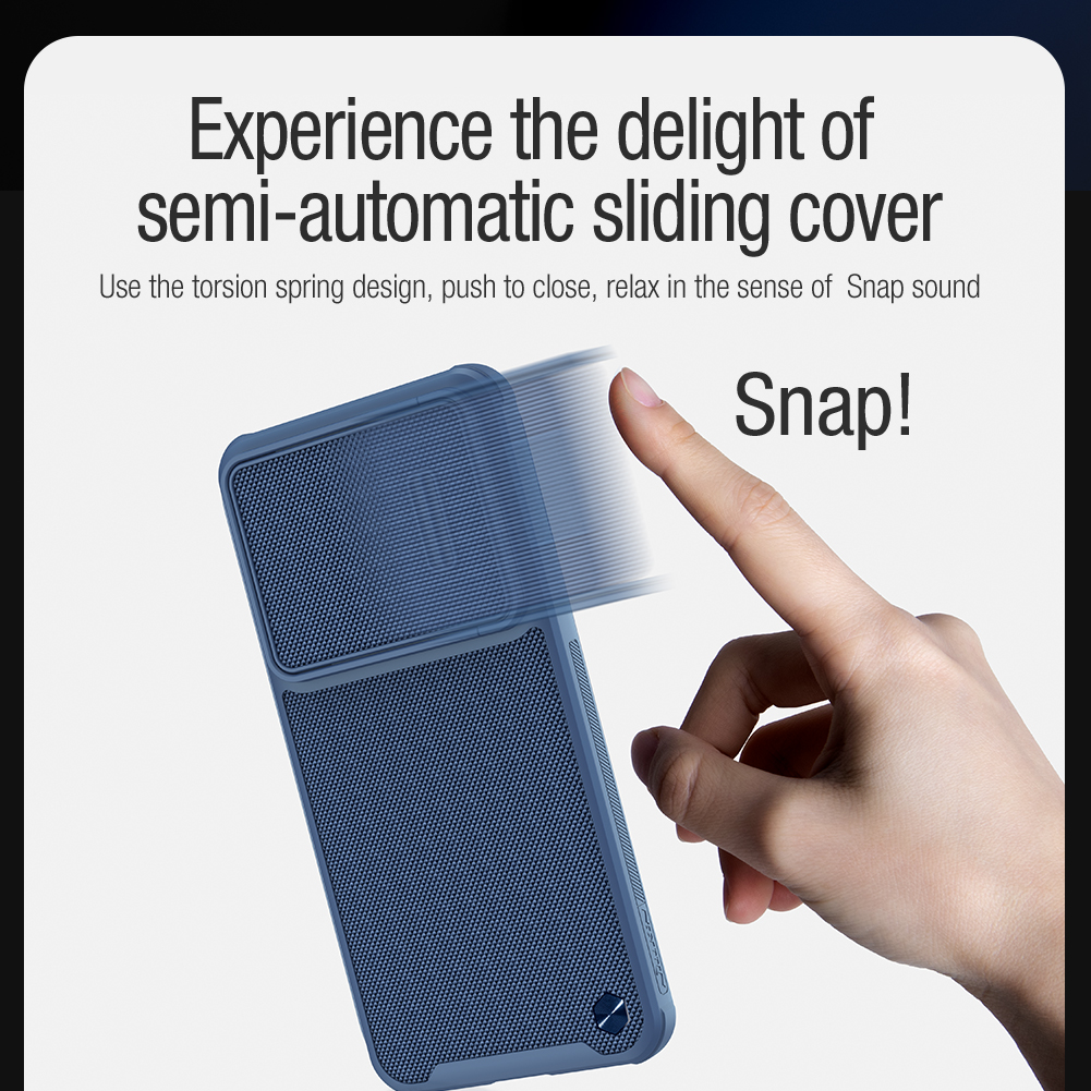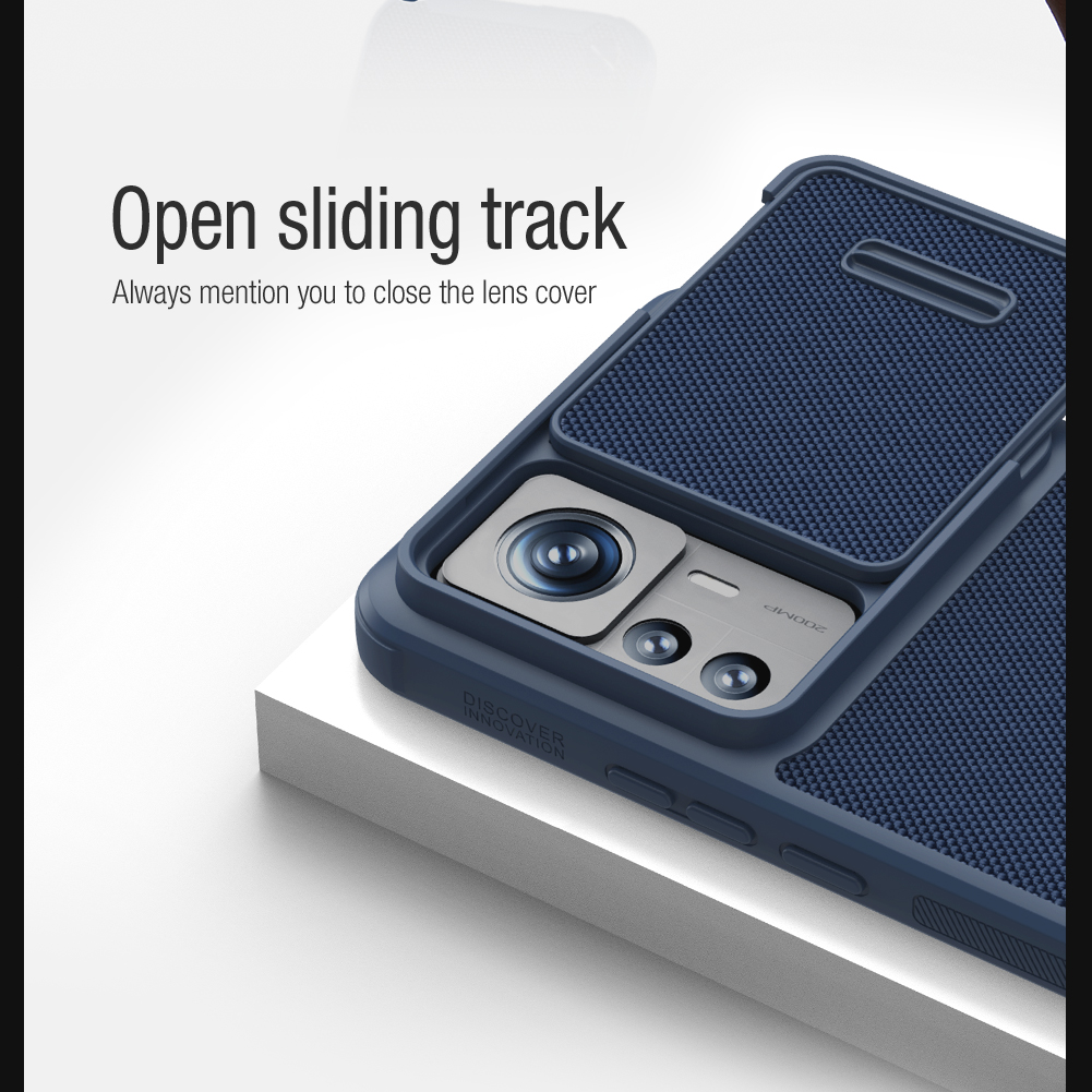 Противоударный чехол темно-синего цвета с полуавтоматической защитной шторкой задней камеры от Nillkin серии Textured Case S для телефона Xiaomi 12T Pro создан для любителей активного отдыха.