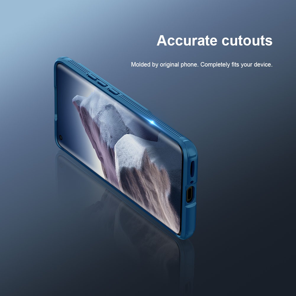 Противоударный чехол синего цвета с защитной шторкой задней камеры от Nillkin серии CamShield Pro Case для телефона Xiaomi Mi 11 Ultra с 2021 года создан для любителей активного отдыха.