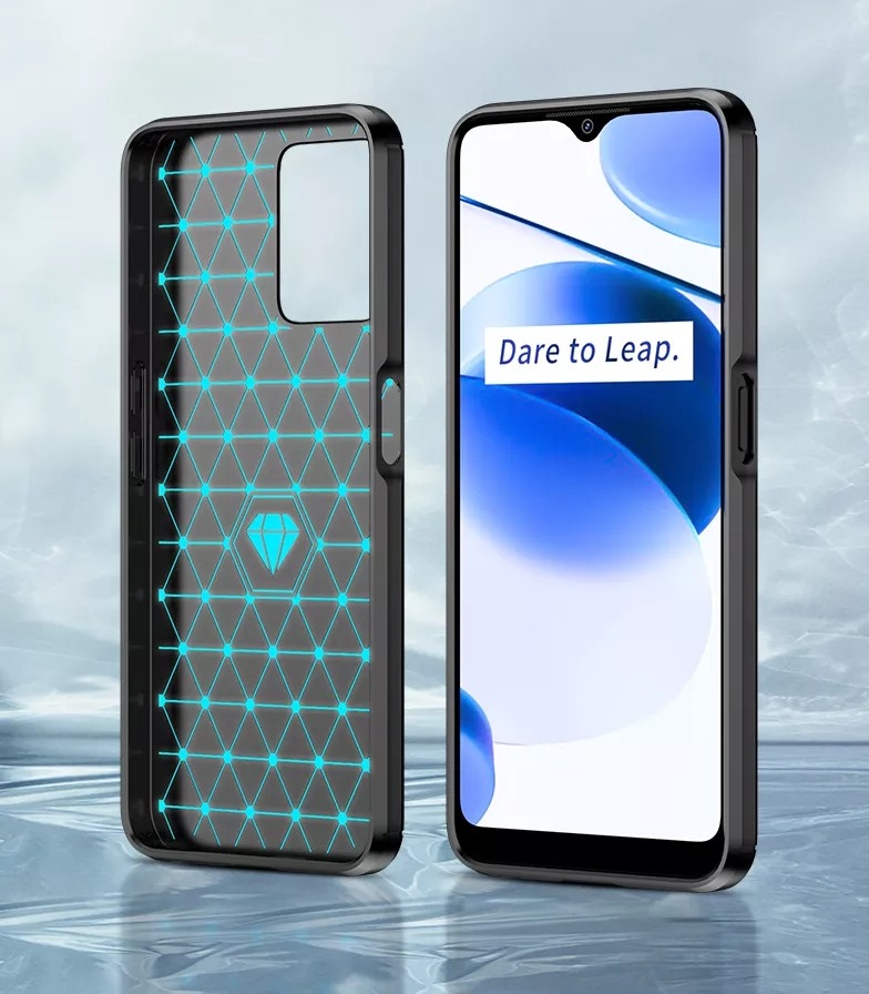 Мягкий бампер чехол накладка синего цвета с высокими бортиками для защиты камеры на телефон Realme C35 с 2022 года от Caseport, серия Carbon