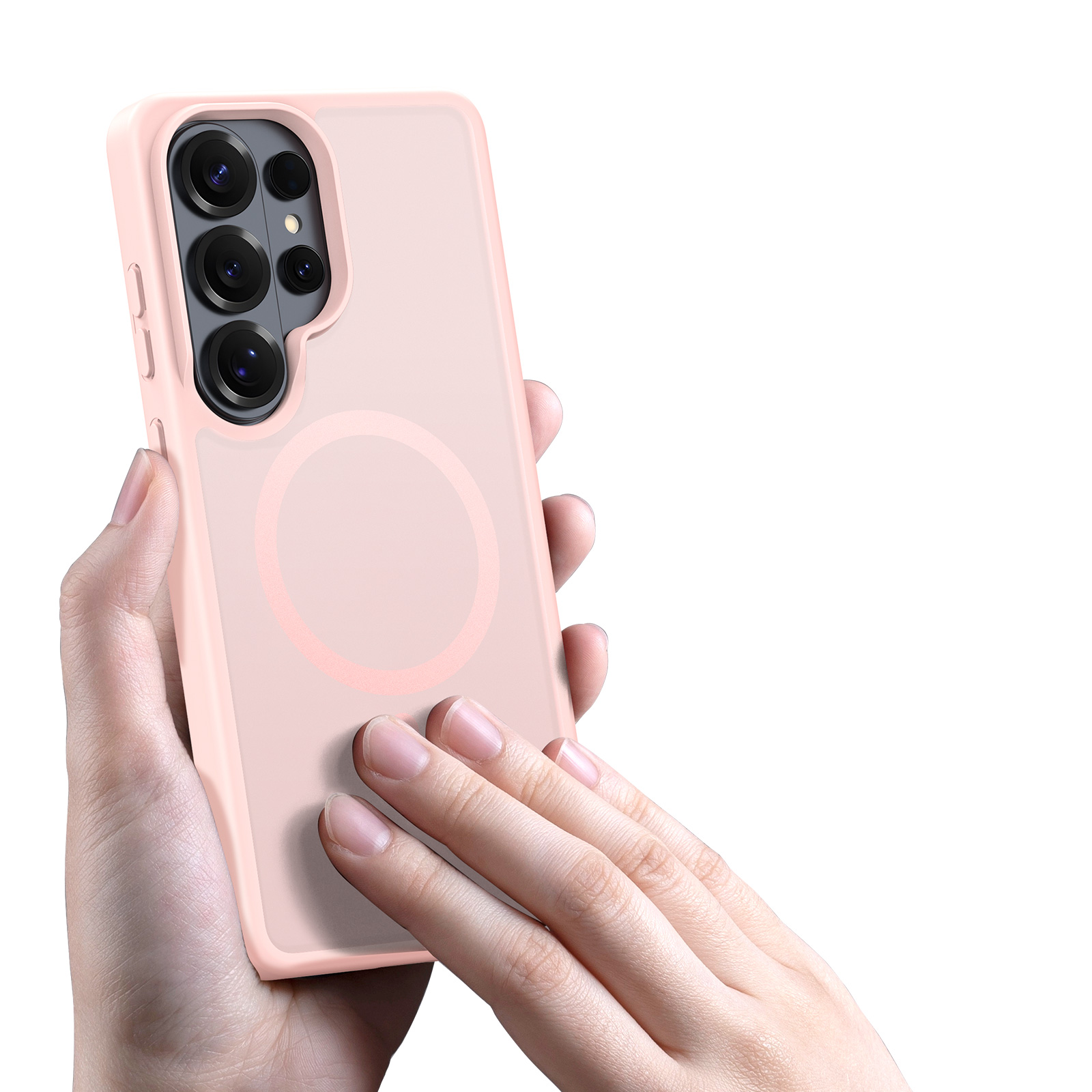 Светло-розовый чехол с функцией MagSafe для смартфона Samsung Galaxy S26 Ultra из коллекции Yind Series бренда Dux Ducis представляет собой сочетание нежного оттенка и современных технологий. Мягкая пастельная расцветка придает устройству легкий и женственный образ, делая его привлекательным элементом повседневного стиля. Чехол оснащен встроенным магнитным кольцом, предназначенным для удобного крепления аксессуаров стандарта MagSafe, включая беспроводные зарядные устройства и держатели. Благодаря продуманному дизайну, камера остается открытой, что гарантирует удобство фотосъемки без каких-либо помех. Матовая поверхность чехла приятно ощущается в руках и предотвращает появление следов пальцев. Надежная конструкция обеспечивает эффективную защиту смартфона от незначительных ударов и царапин, сохраняя его эстетичный вид на долгое время.