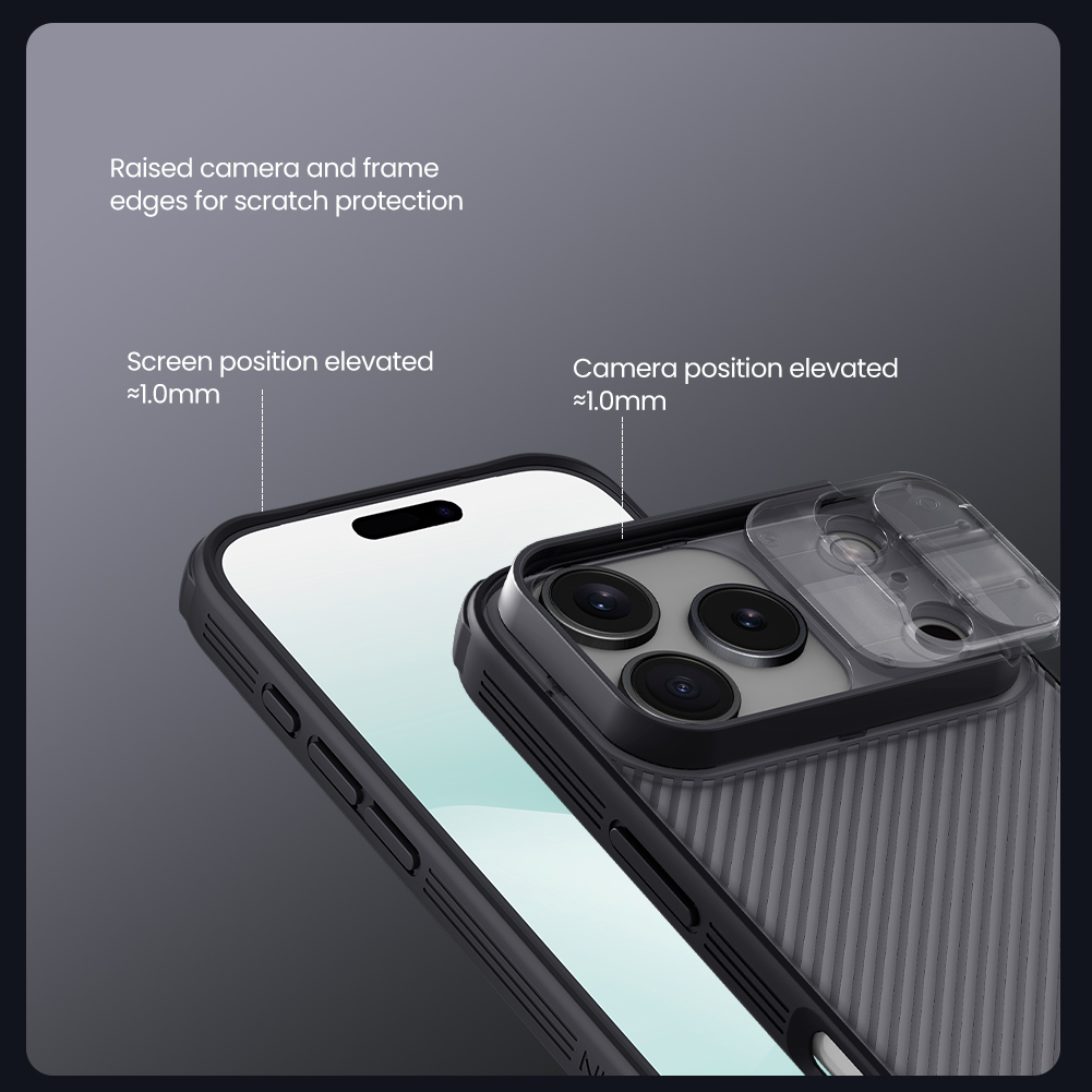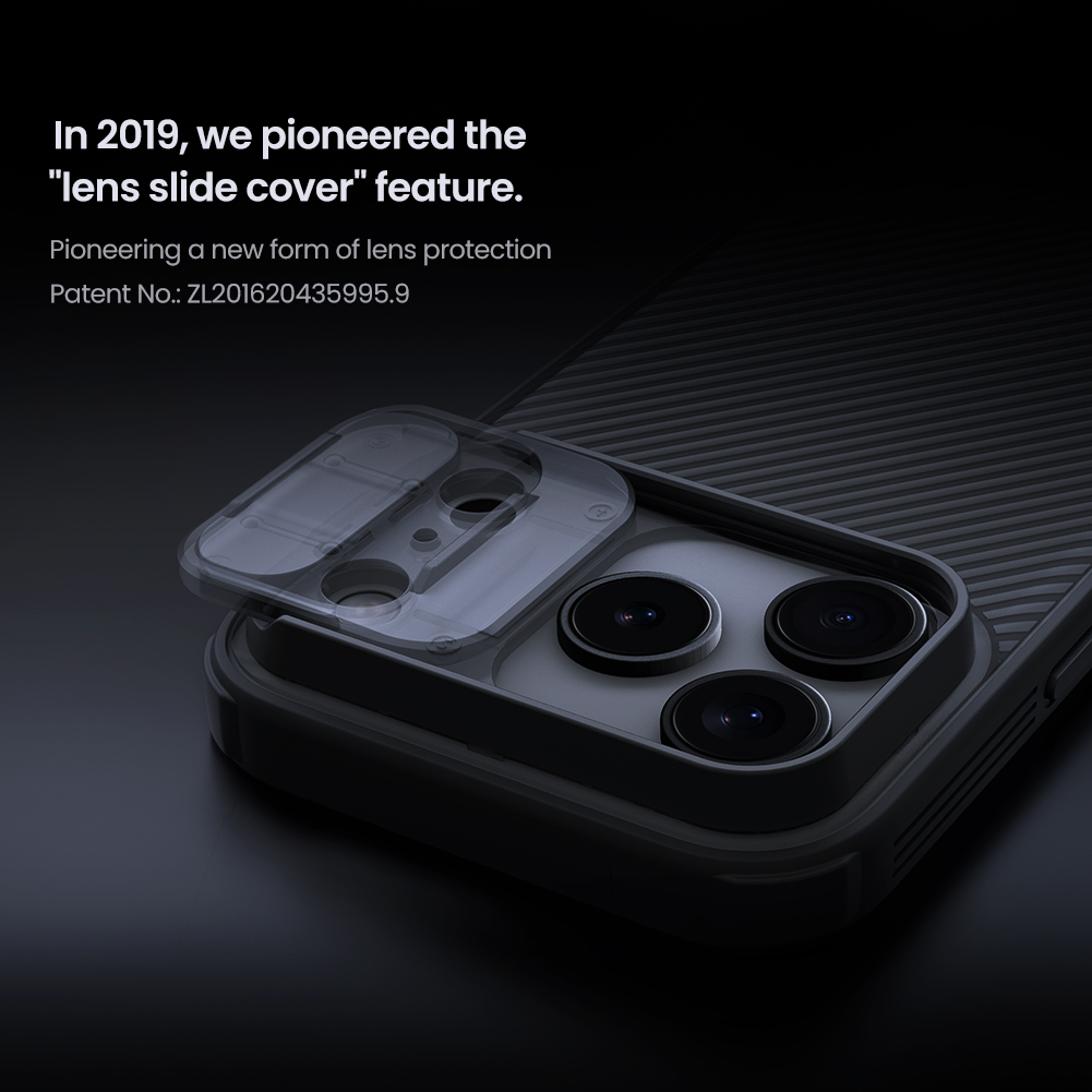 Обновлённая версия сдвижной шторки с учетом особенностей Айфон 17 Про! Противоударный чехол тонированный прозрачный с защитной шторкой задней камеры от Nillkin серии CamShield Pro Case для телефона iPhone 17 Pro создан для любителей активного отдыха.