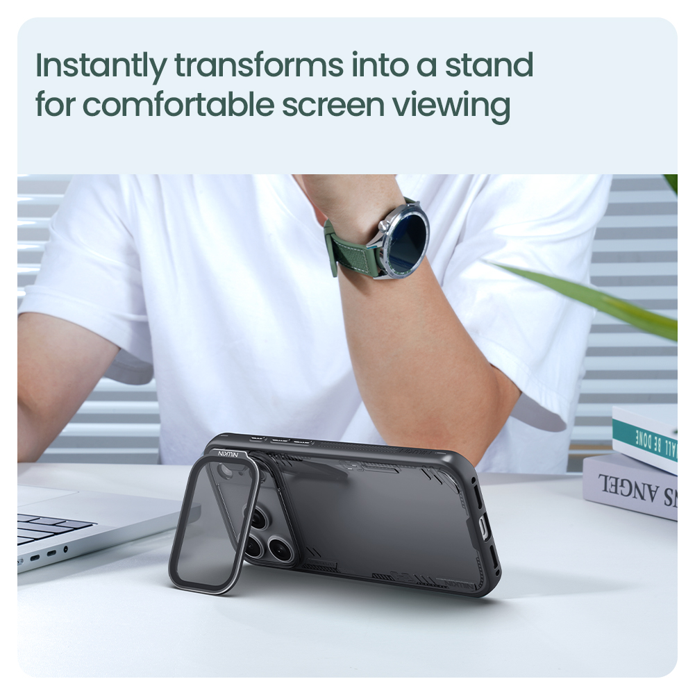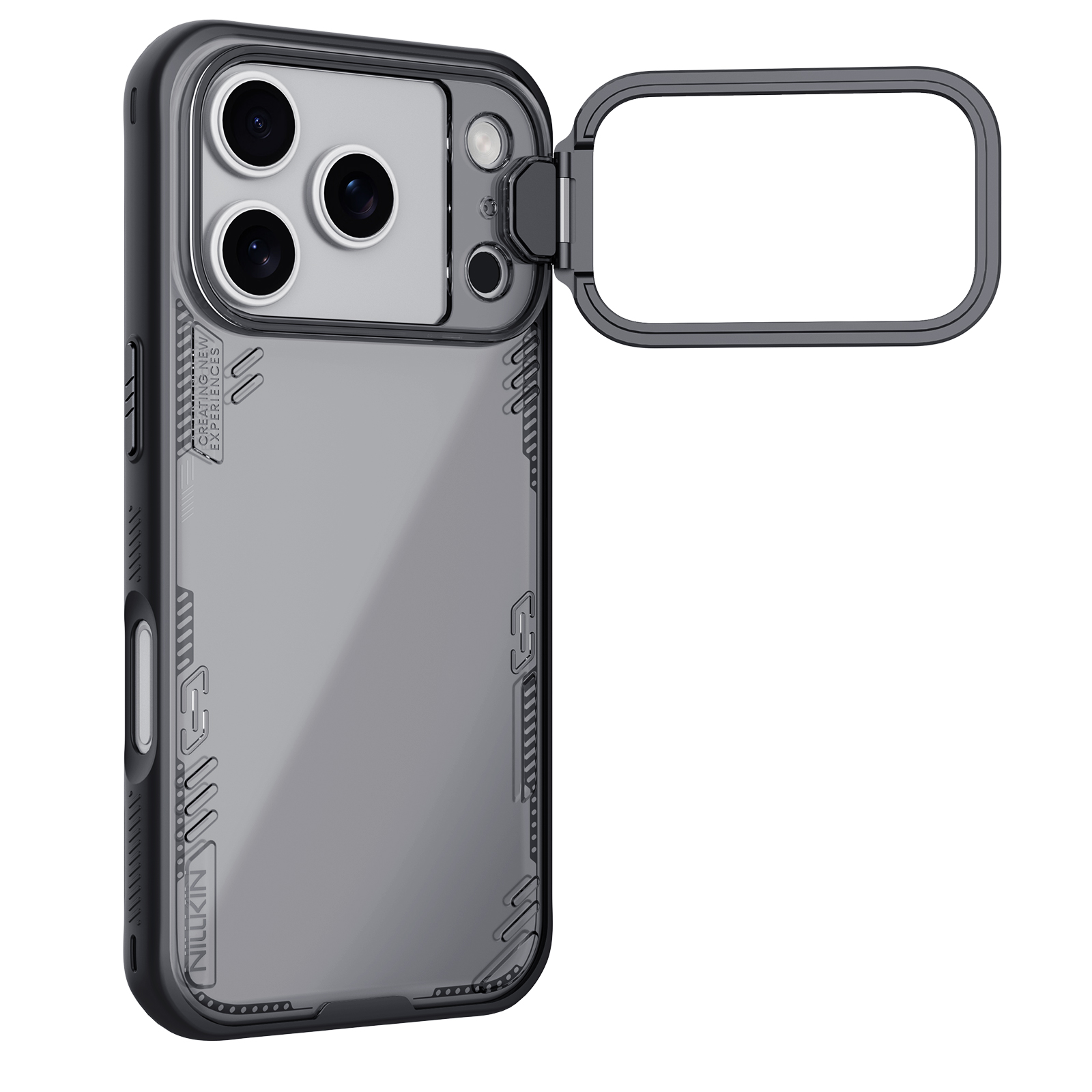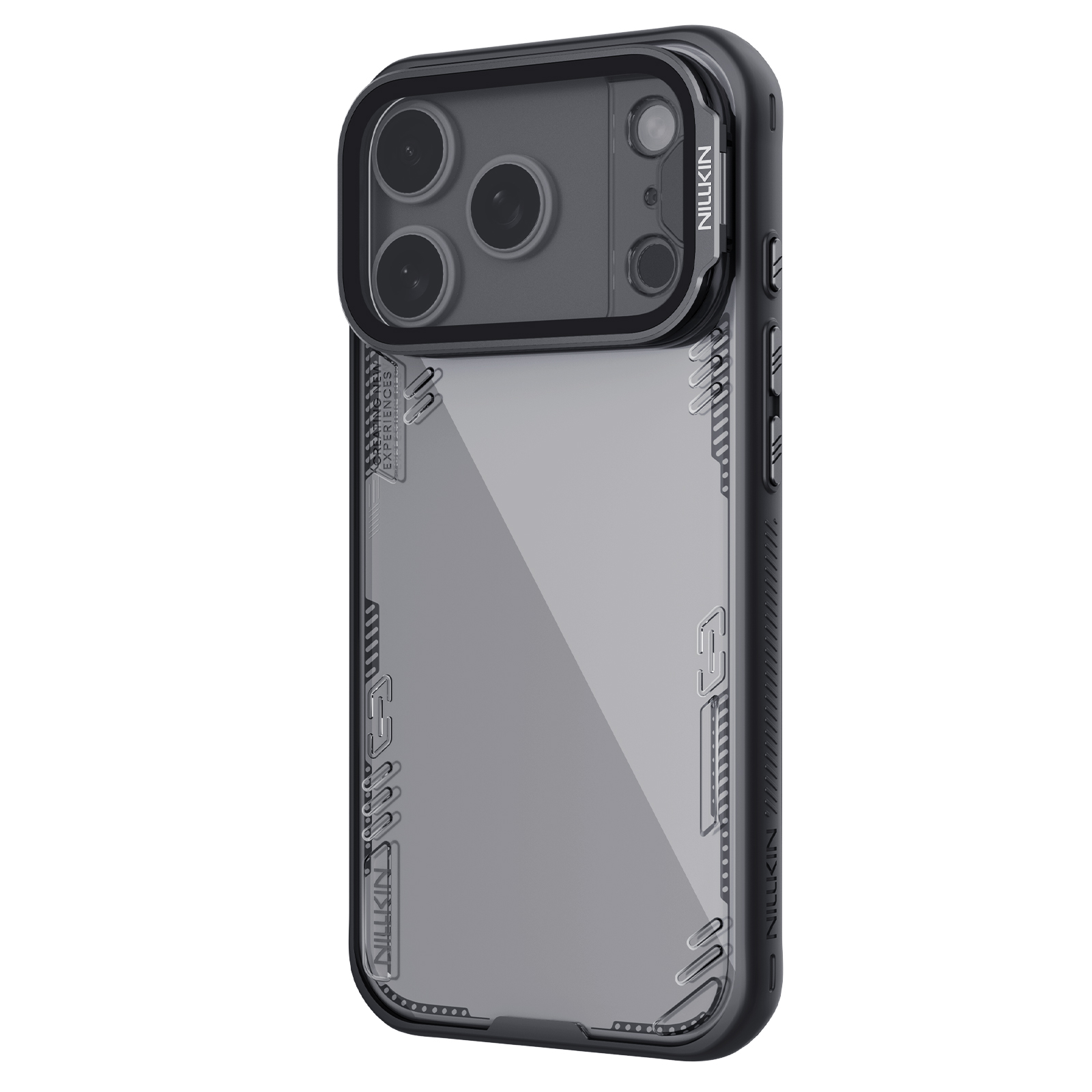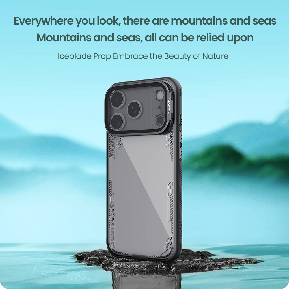 Противоударный чехол прозрачный тонированный с металлической откидной крышкой от Nillkin серии Iceblade Prop Case (версия с прозрачной крышкой объектива) для телефона iPhone 17 Pro создан для любителей активного отдыха.