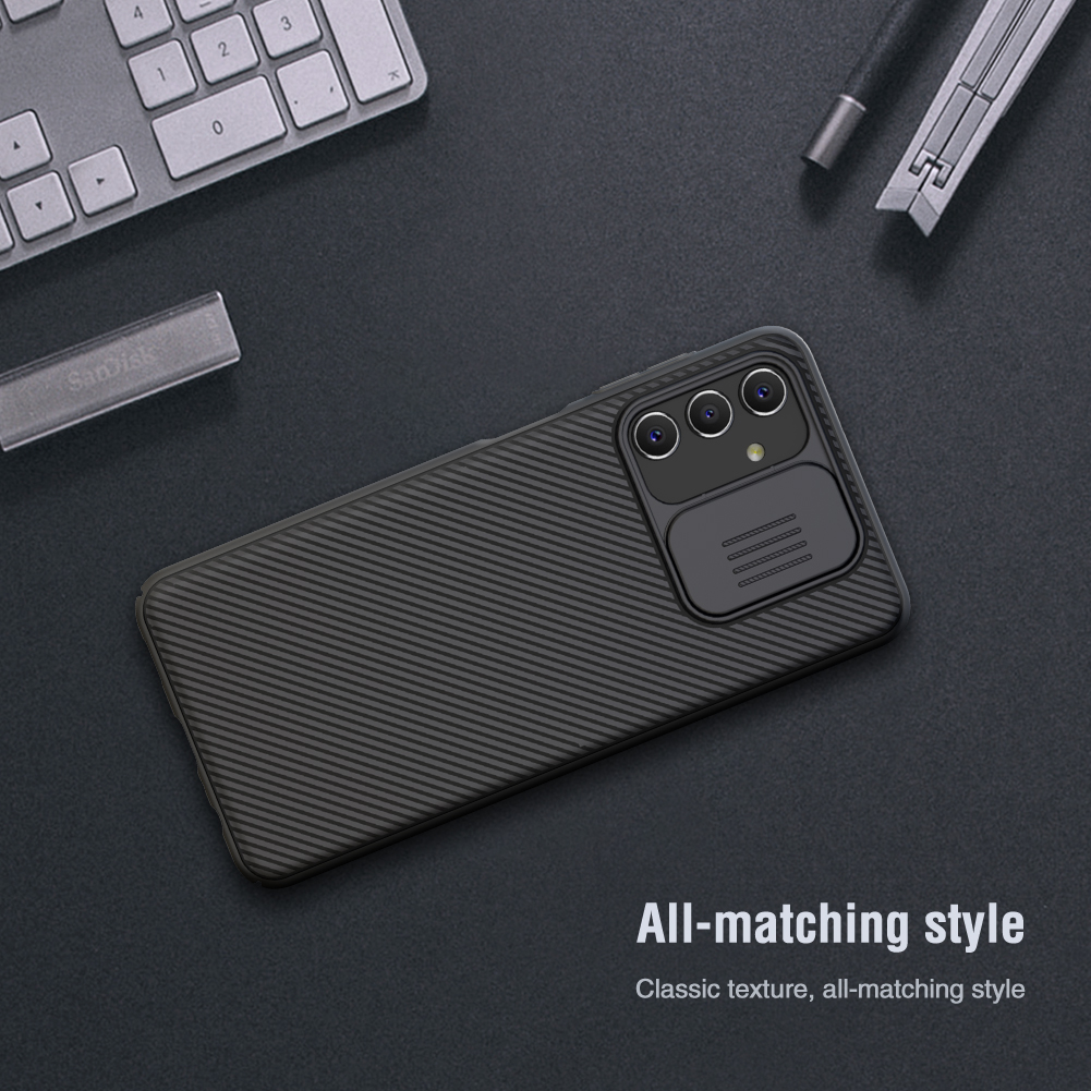 Противоударный тонкий чехол с защитной шторкой для задней камеры серии CamShield Case от Nillkin для Samsung Galaxy A04S создан для любителей активного отдыха.
