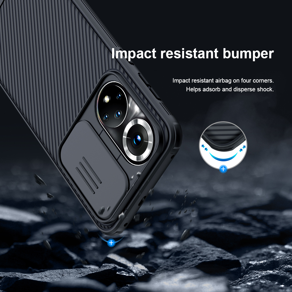 Противоударный чехол с защитной крышкой задней камеры от Nillkin серии CamShield Pro Case для телефона Huawei Honor 50 создан для любителей активного отдыха.