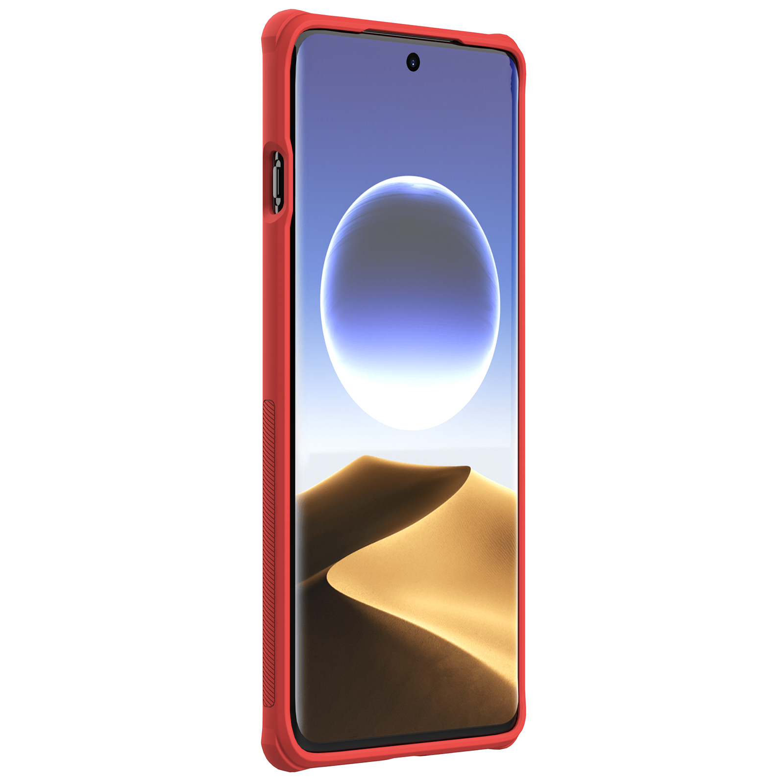 Защитный чехол красного цвета от Nillkin серии Super Frosted Shield для смартфона OPPO Find X7 Ultra с усиленными боковыми рамками по четырем углам, изготавливается из экологичных материалов PC и TPU путем высокоточного литья под давление с высокой температурой.