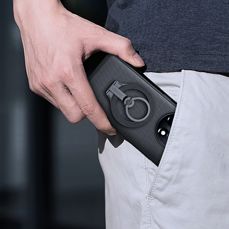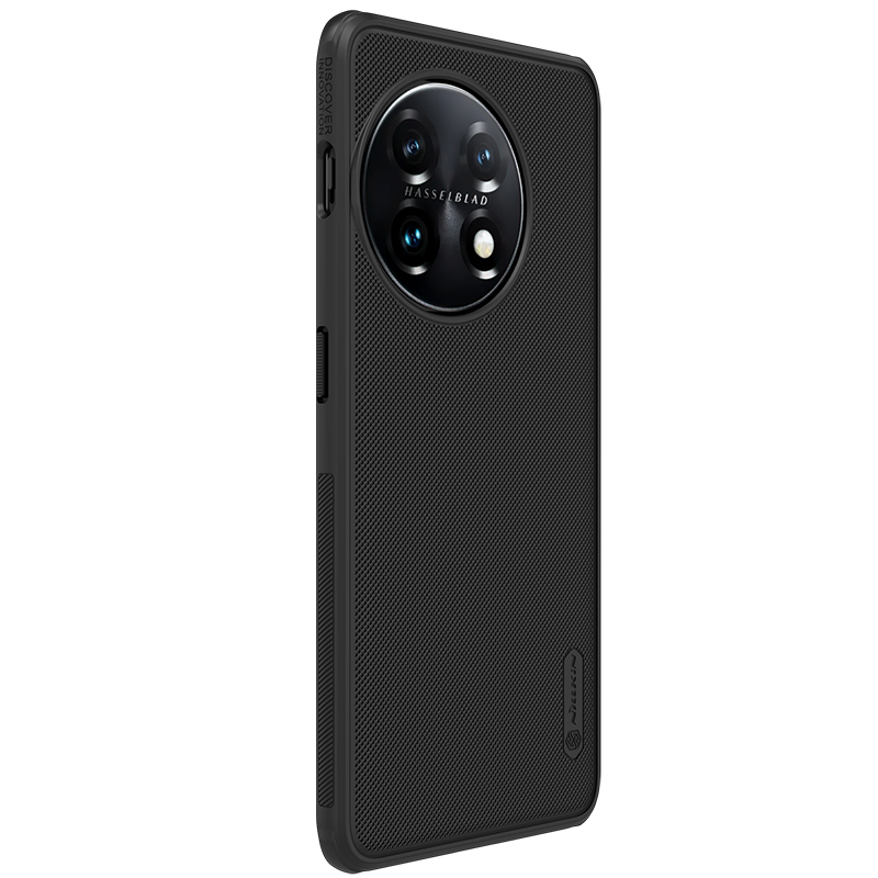 Защитный чехол черного цвета от Nillkin серии Super Frosted Shield Pro Magnetic для смартфона OnePlus 11 с усиленными боковыми рамками по четырем углам и встроенным магнитом, изготавливается из экологичных материалов PC и TPU путем высокоточного литья под давление с высокой температурой.