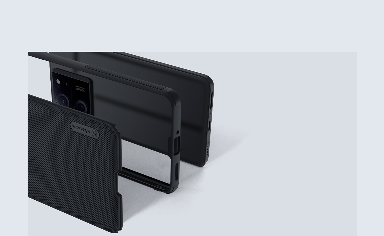 Защитный чехол черного цвета от Nillkin серии Super Frosted Shield Pro Magnetic для смартфона Xiaomi 13T и 13T Pro с усиленными боковыми рамками по четырем углам и встроенным магнитом, изготавливается из экологичных материалов PC и TPU путем высокоточного литья под давление с высокой температурой.