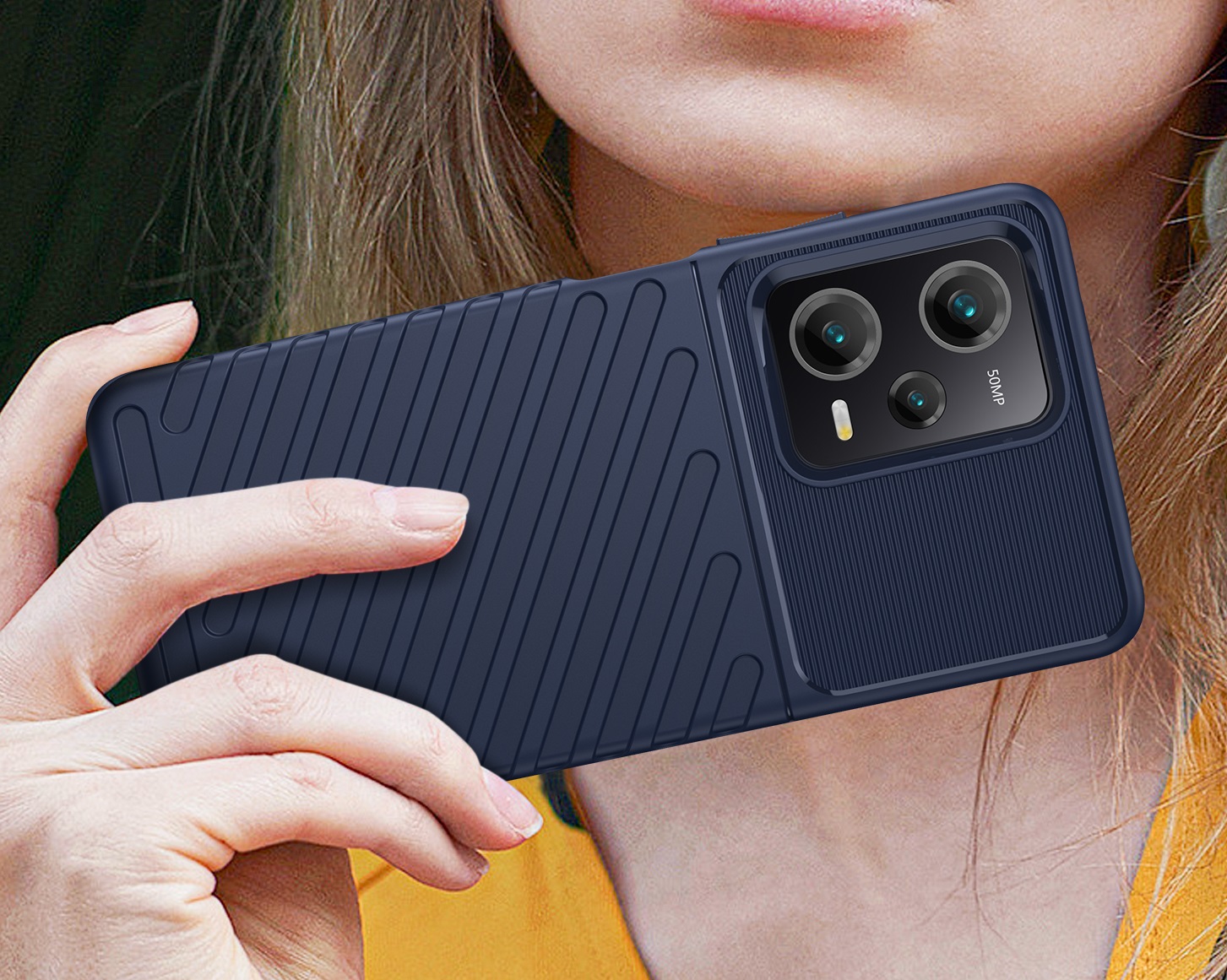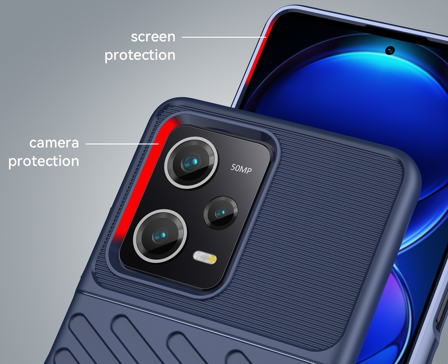 Защитный чехол бампер с рельефной фактурой синего цвета для телефона Xiaomi Redmi Note 12 Pro и POCO X5 Pro 5G от Caseport, серия Onyx