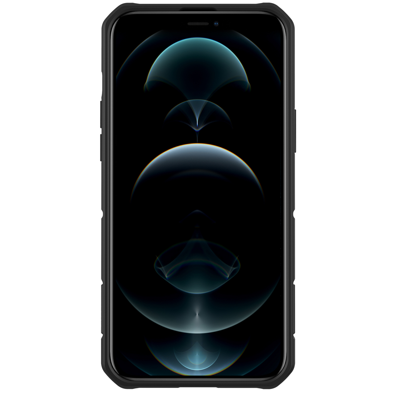 Противоударный чехол синего цвета с кольцом и металлической защитной крышкой для задней камеры от Nillkin серии CamShield Armor Case для телефона iPhone 13 Pro Max создан для любителей активного отдыха.