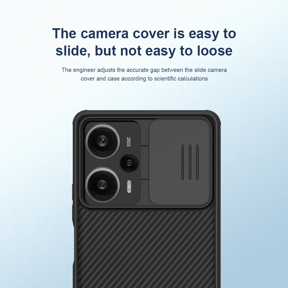 Противоударный чехол зеленого цвета с защитной шторкой задней камеры от Nillkin серии CamShield Pro Case для телефона Xiaomi Redmi Note 12 Turbo и Poco F5 создан для любителей активного отдыха.