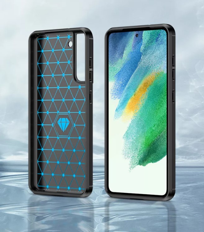 Бампер накладка темно-синего цвета на телефон Samsung Galaxy S21 FE с 2021 года от Caseport, серия Carbon