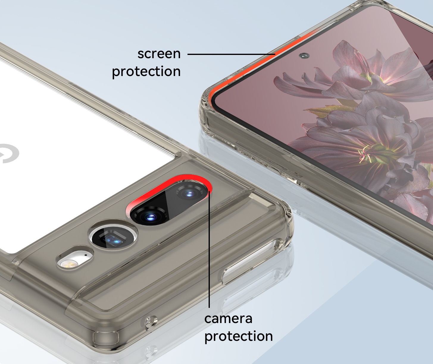 Защитный, противоударный чехол с усиленными боковыми рамками серого цвета для дисплея на телефон Google Pixel 7 Pro от Caseport, серия Fusion