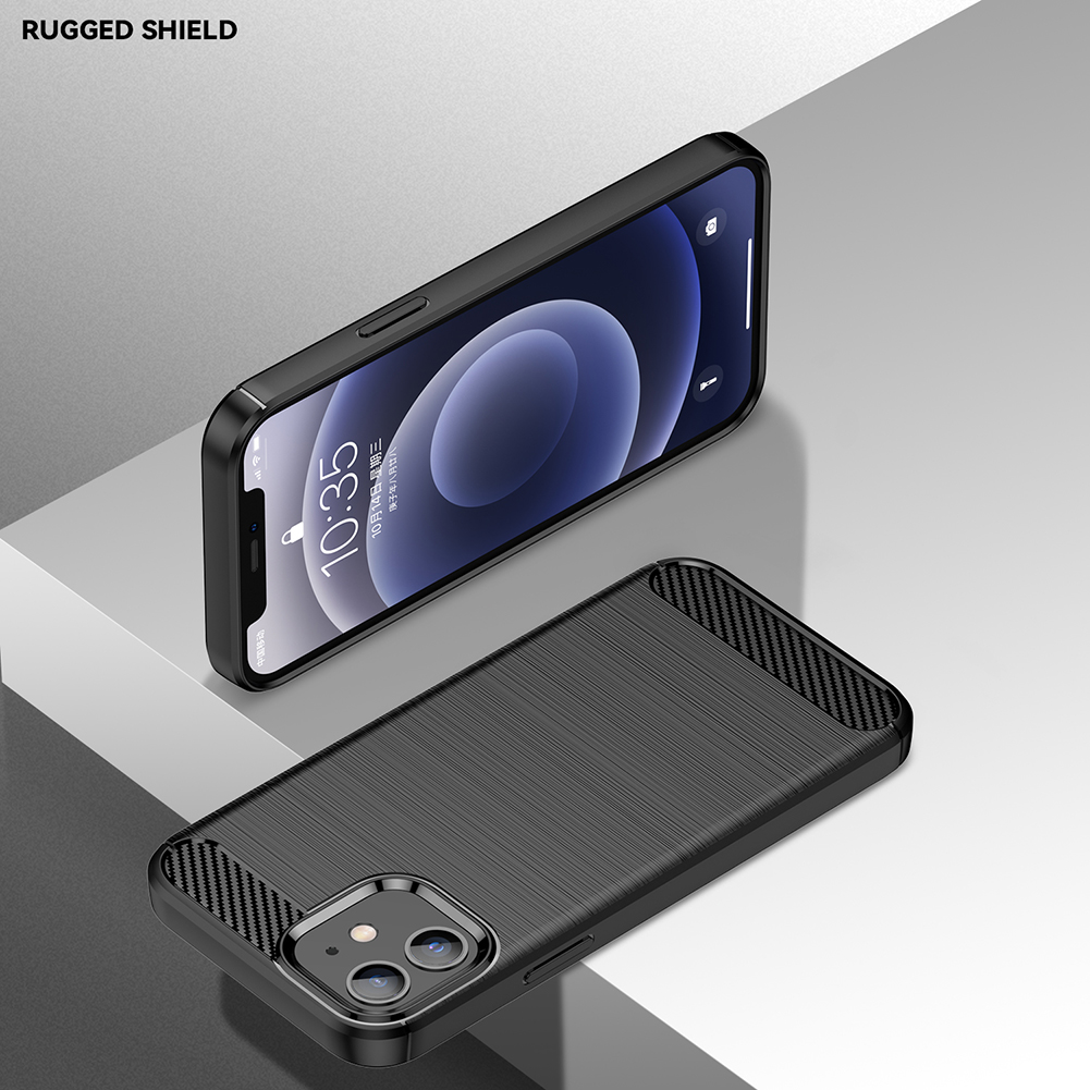 Мягкий ударопрочный чехол-бампер черного цвета с вставками "под карбон" на iPhone 12 mini от Caseport, серия Carbon