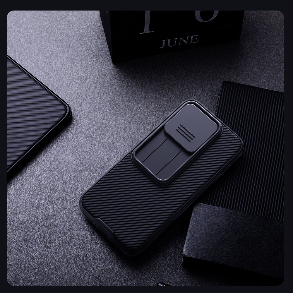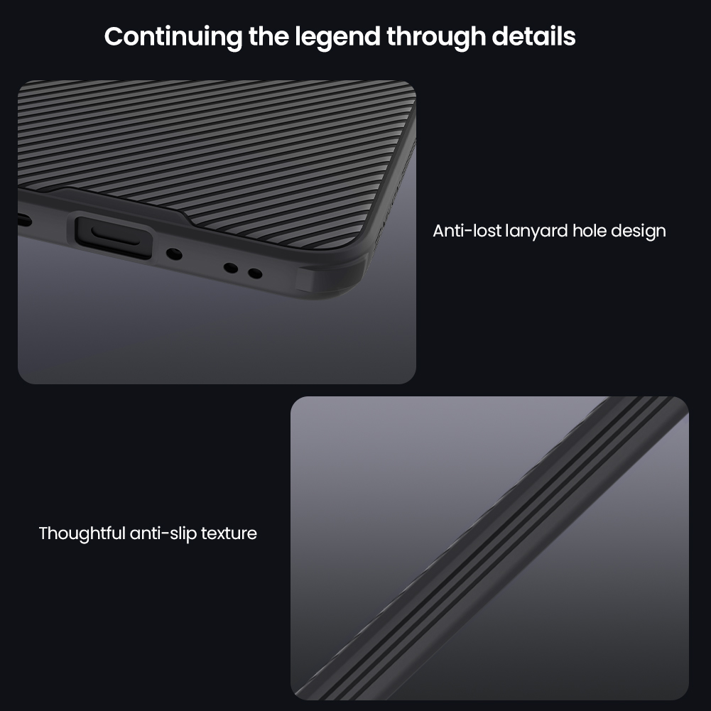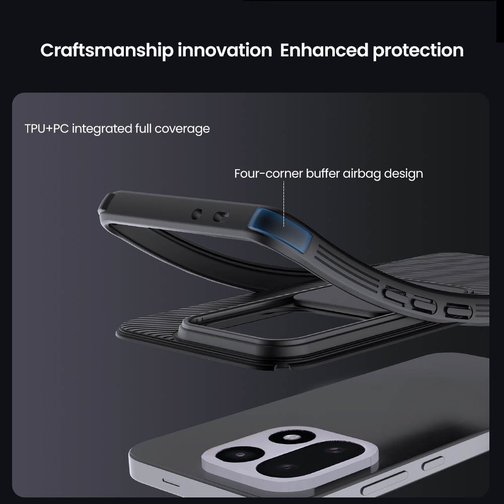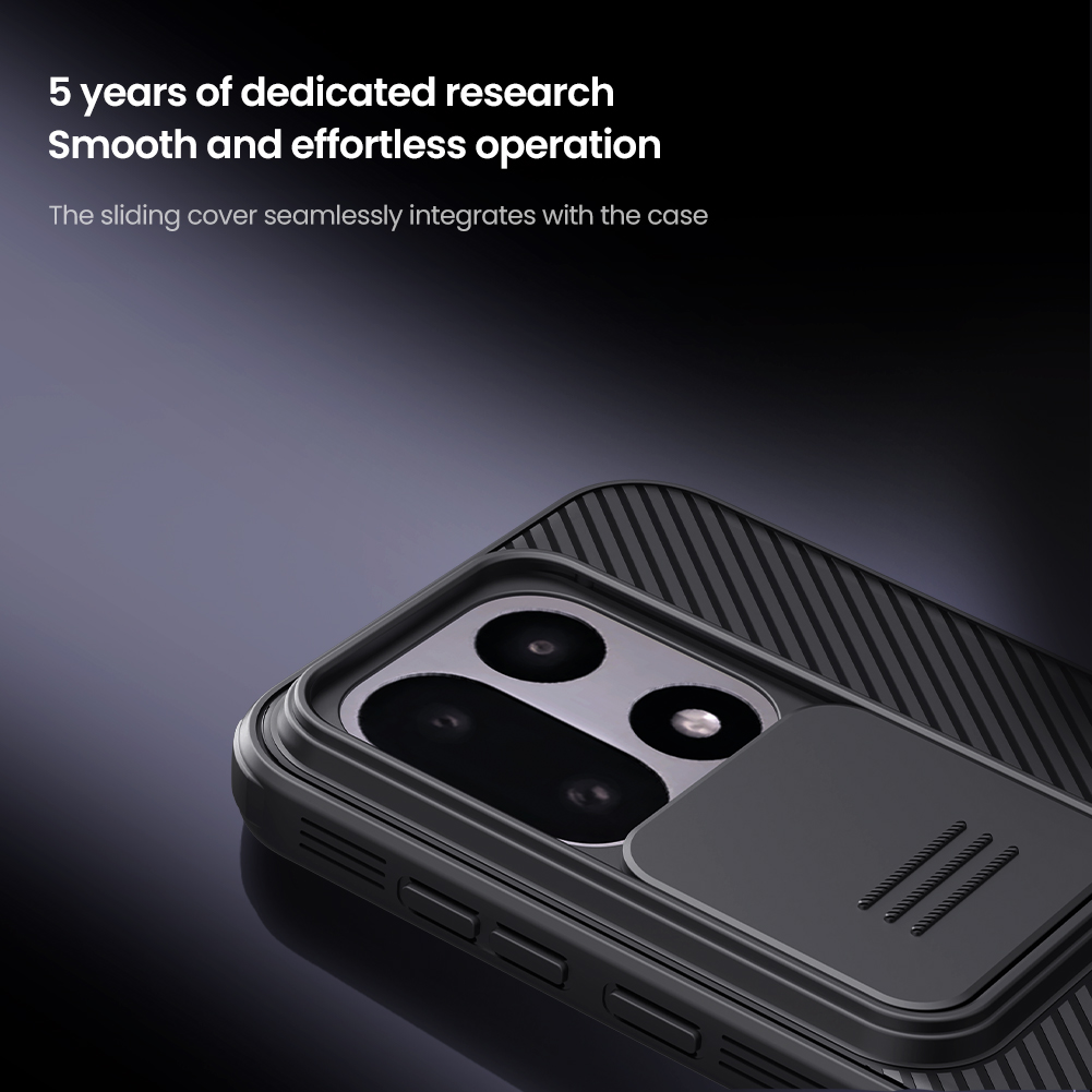 Противоударный чехол черного цвета с защитной шторкой задней камеры от Nillkin серии CamShield Pro Case для телефона OnePlus 15 создан для любителей активного отдыха.