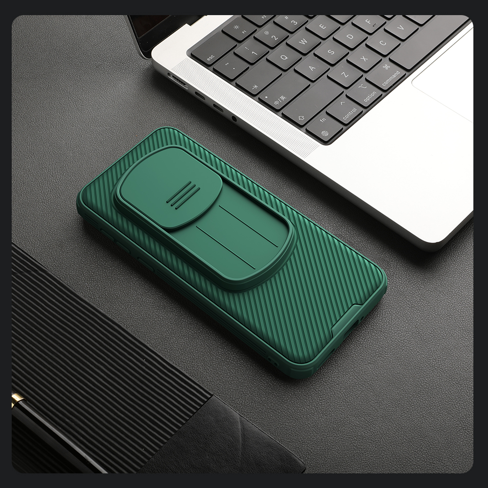 Противоударный чехол зеленого цвета (Dark Green) с защитной шторкой задней камеры от Nillkin серии CamShield Pro Case для телефона Honor Magic 7 Pro создан для любителей активного отдыха.