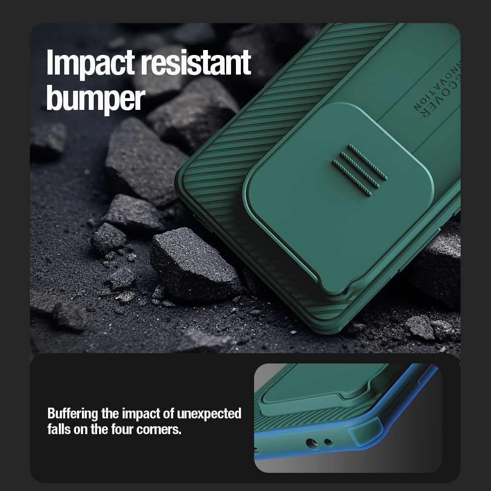 Противоударный чехол зеленого цвета (Deep Green) с защитной шторкой задней камеры от Nillkin серии CamShield Pro Case для телефона OnePlus 12 создан для любителей активного отдыха.