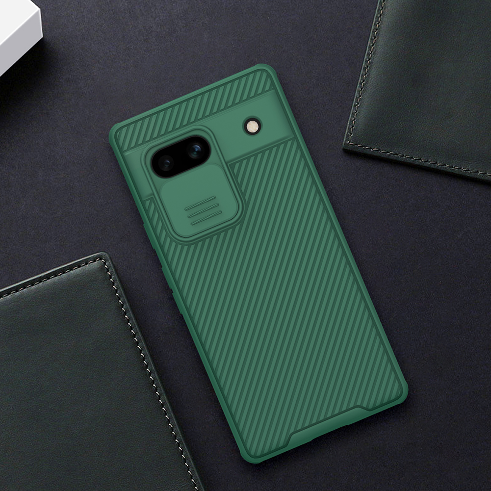 Противоударный чехол зеленого цвета с защитной шторкой задней камеры от Nillkin серии CamShield Pro Case для телефона Google Pixel 7A создан для любителей активного отдыха.