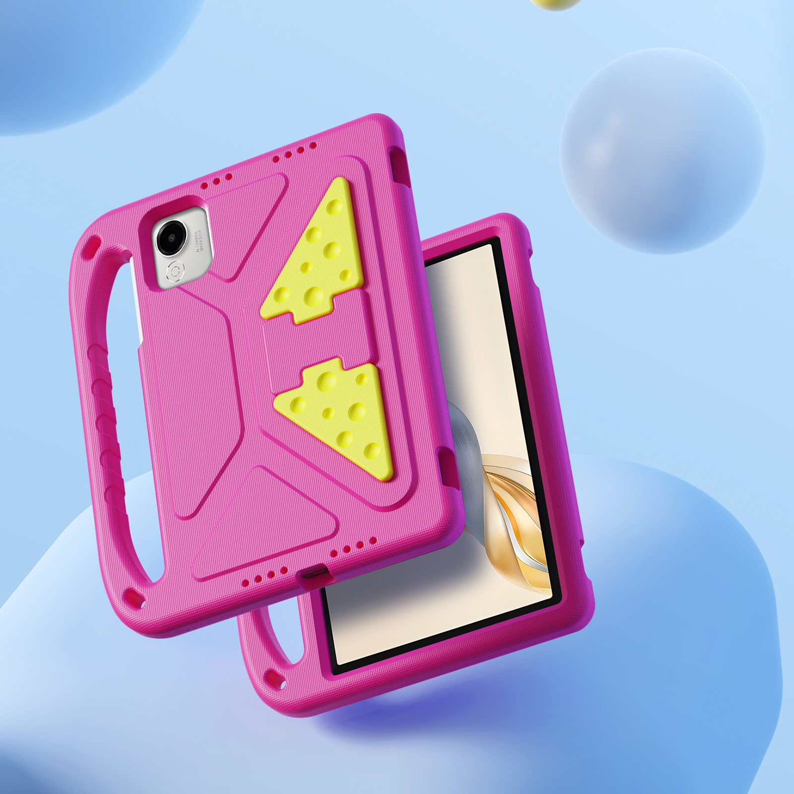 Противоударный чехол розового цвета изготовленный специально для детей на планшет Honor Pad X9a и X9