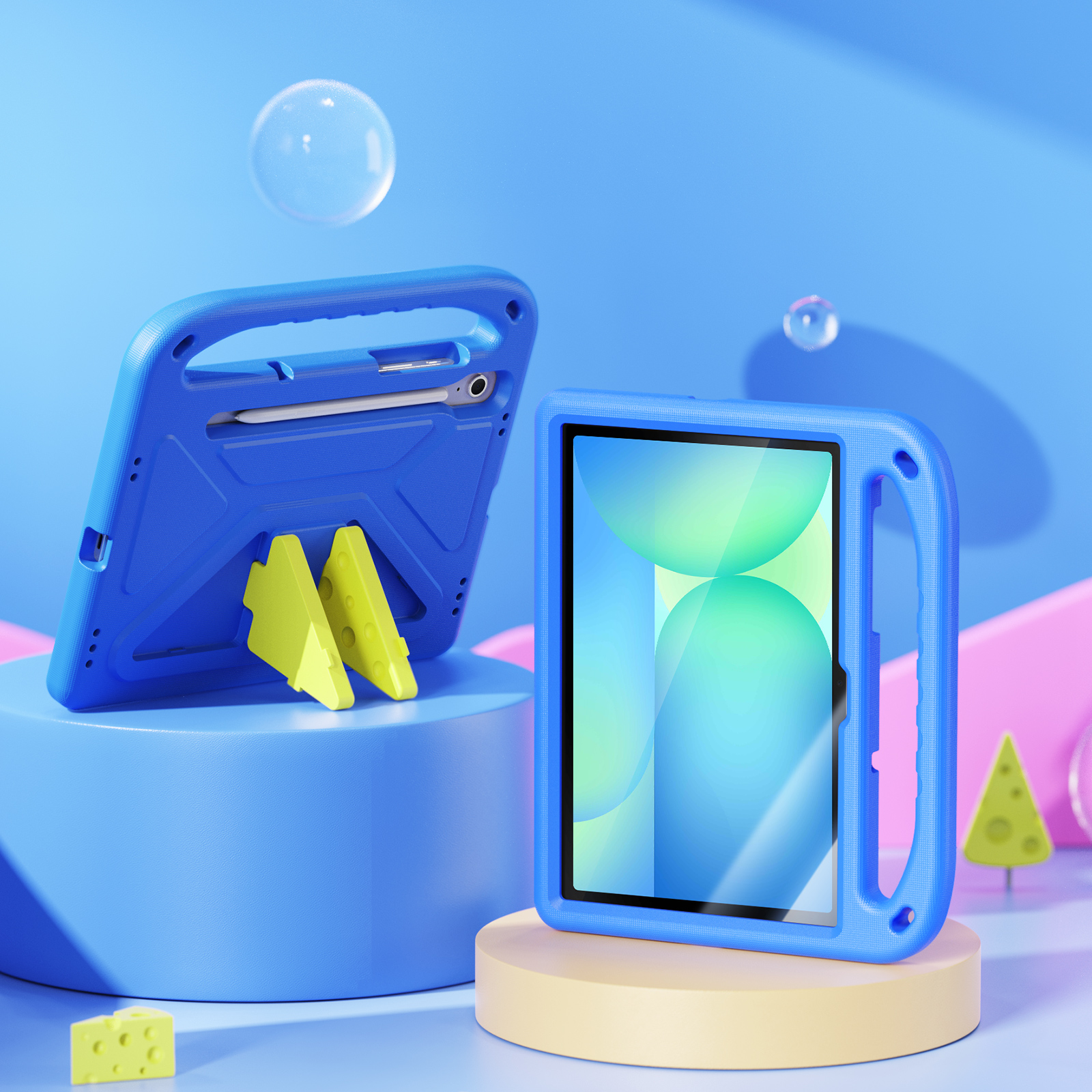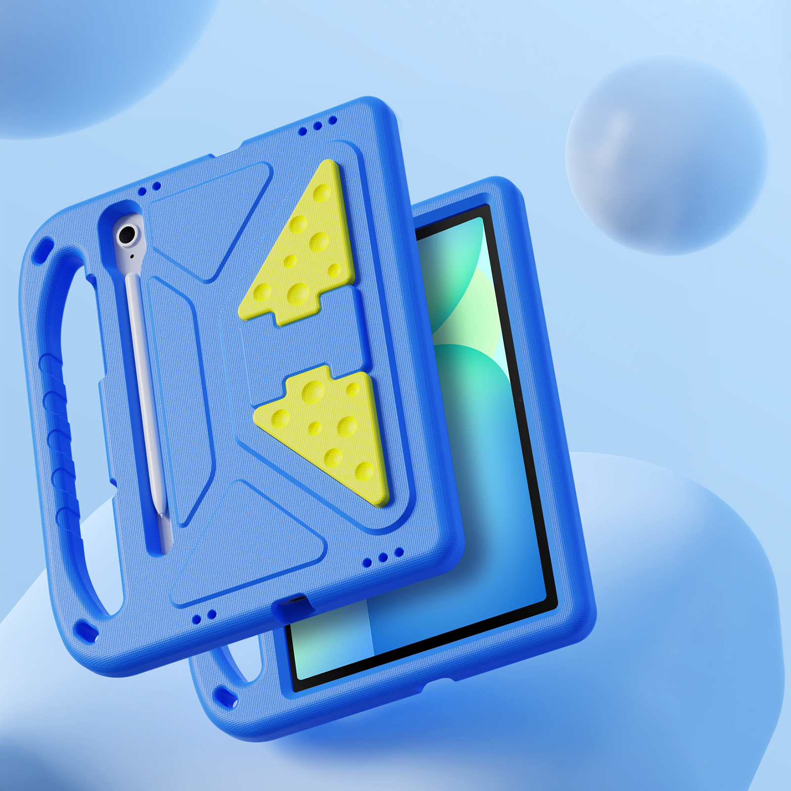 Противоударный чехол синего цвета изготовленный специально для детей на планшет Samsung Tab S10 FE, S9, S9 FE, S8 и S7