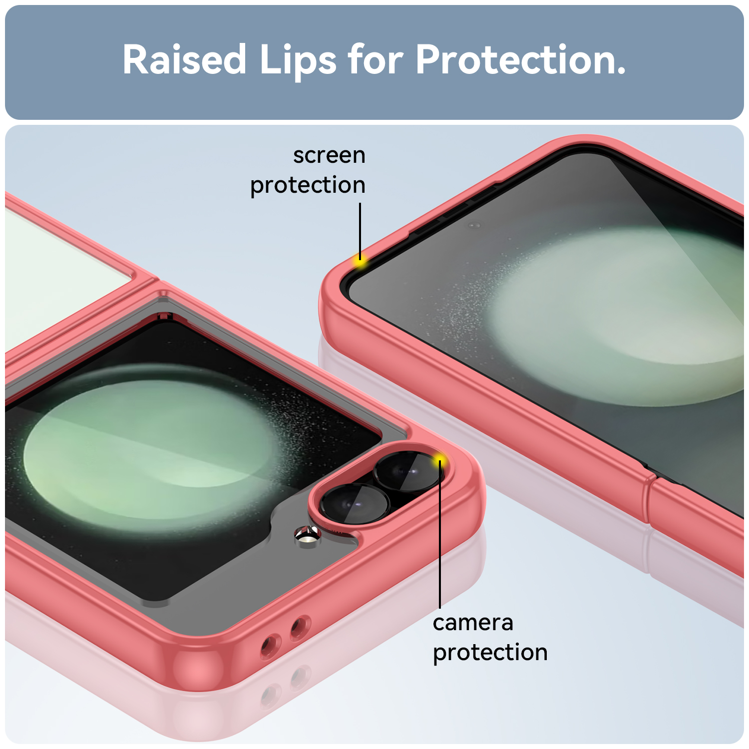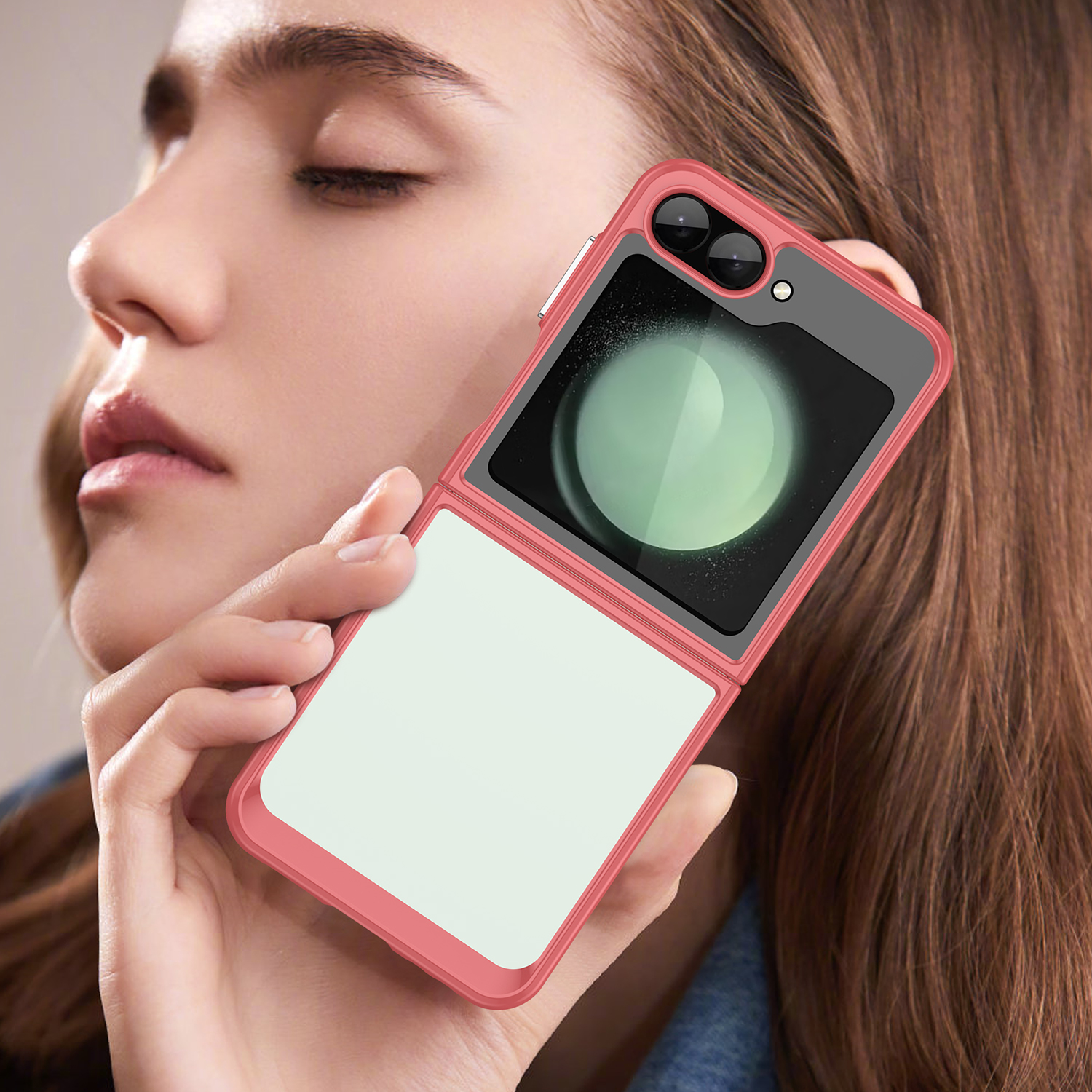 Защитный противоударный чехол с усиленными боковыми рамками красного цвета для дисплея на телефон Samsung Galaxy Flip 6 5G от Caseport, серия Fusion