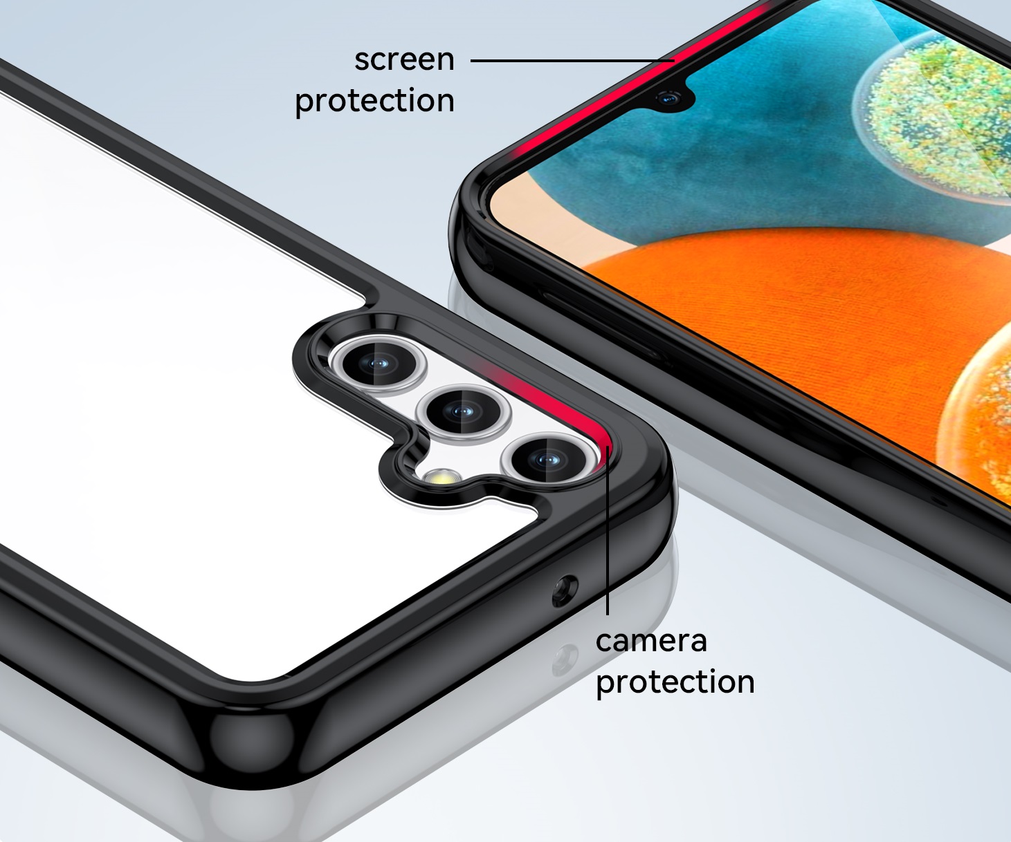 Специальные бортики на чехле приподнимают смартфон, не давая соприкасаться экрану и камере с плоскими поверхностями.
