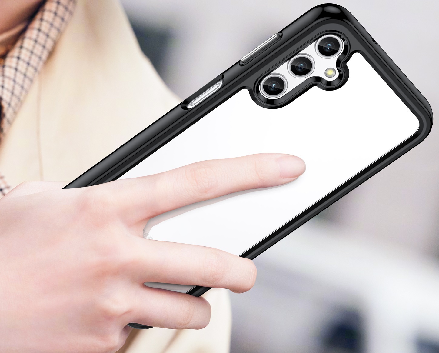 Защитный, противоударный чехол с усиленными боковыми рамками черного цвета для дисплея на телефон Samsung Galaxy A14 5G от Caseport, серия Fusion