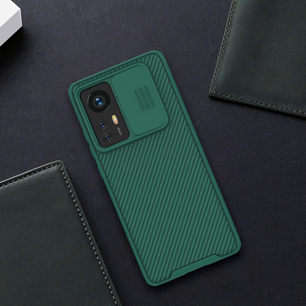Противоударный чехол зеленого цвета с защитной крышкой задней камеры от Nillkin серии CamShield Pro Case для телефона Xiaomi Mi 12 и 12X с 2022 года создан для любителей активного отдыха.
