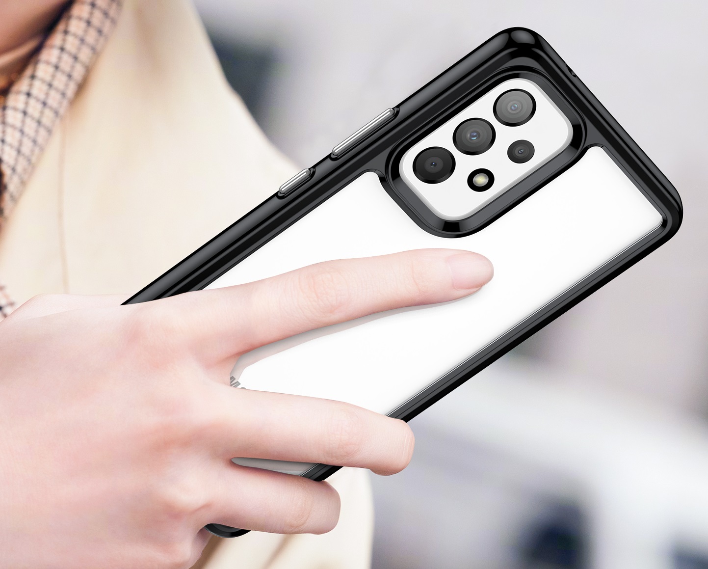 Защитный, противоударный чехол с усиленными боковыми рамками черного цвета для дисплея на телефон Samsung Galaxy A53 5G от Caseport, серия Fusion