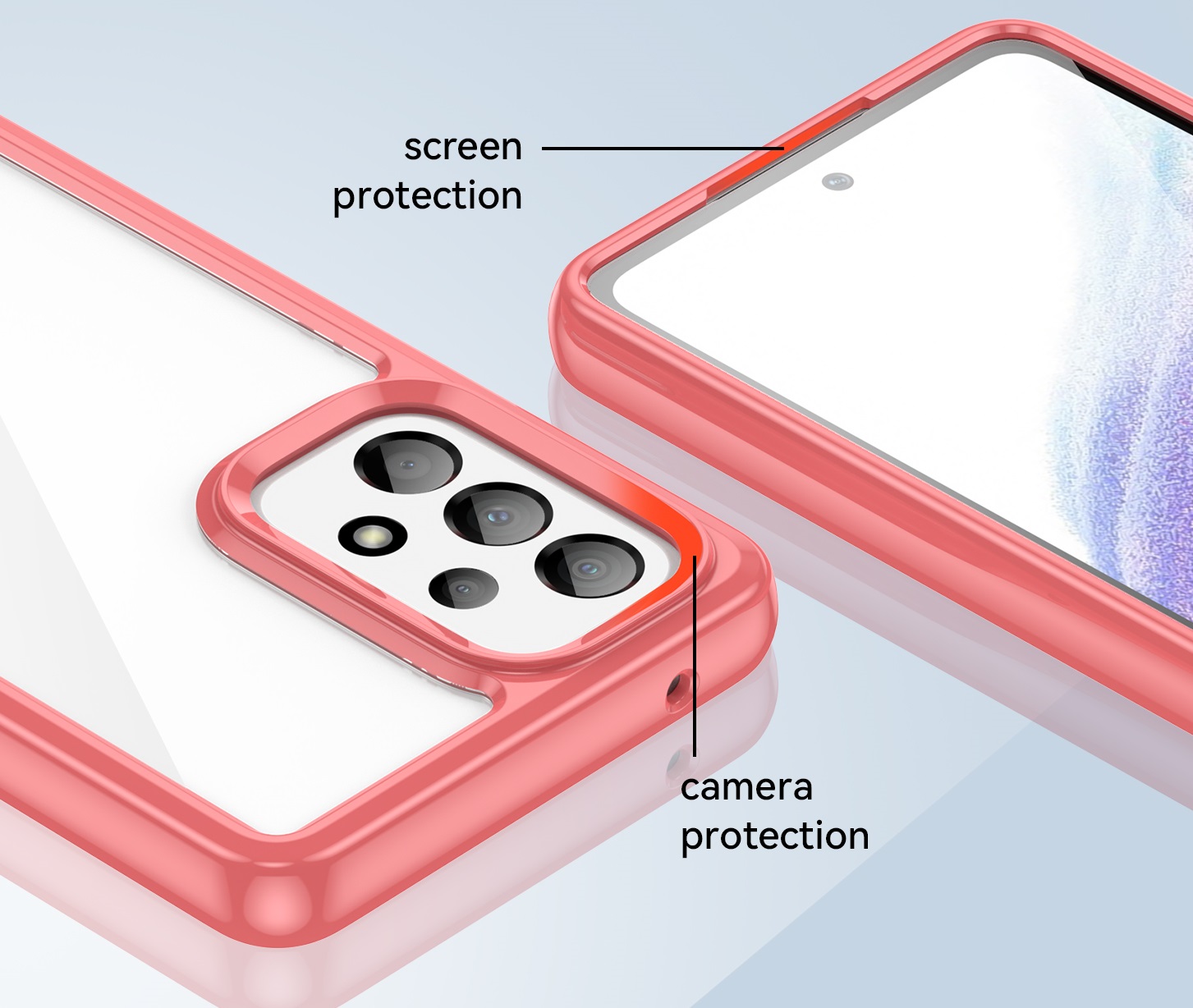 Специальные бортики на чехле приподнимают смартфон, не давая соприкасаться экрану и камере с плоскими поверхностями.