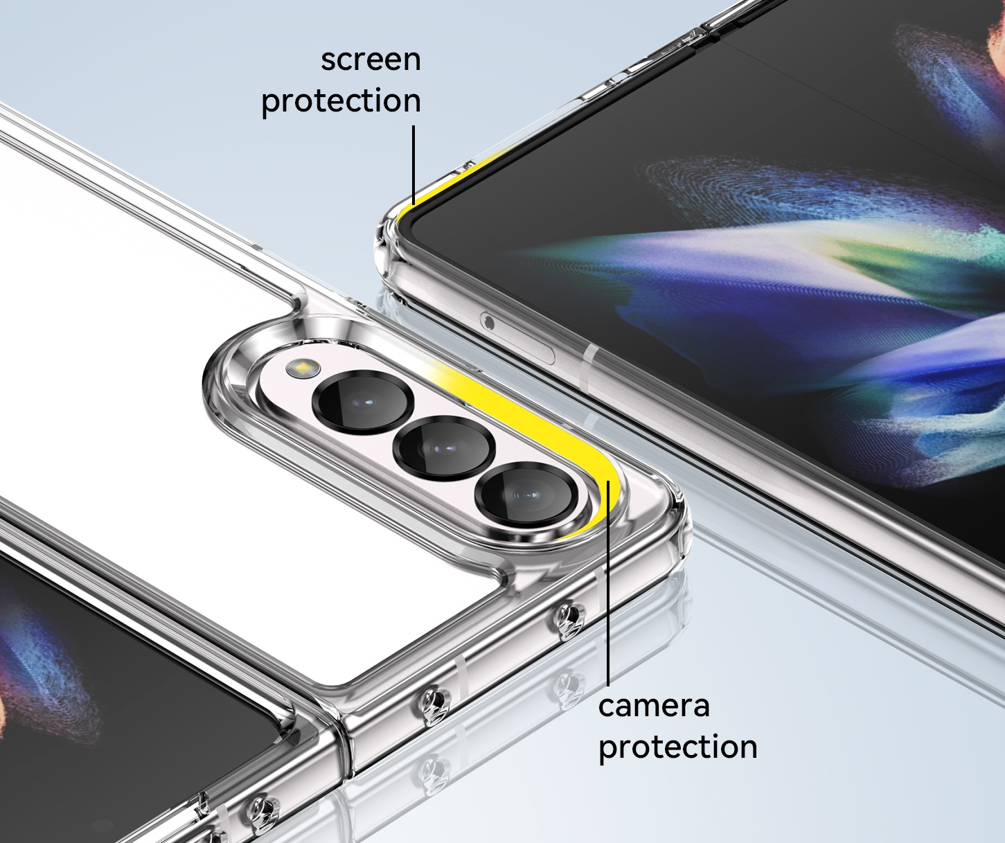 Защитный, противоударный чехол с усиленными боковыми рамками прозрачного цвета для дисплея на телефон Samsung Galaxy Z Fold3 от Caseport, серия Fusion