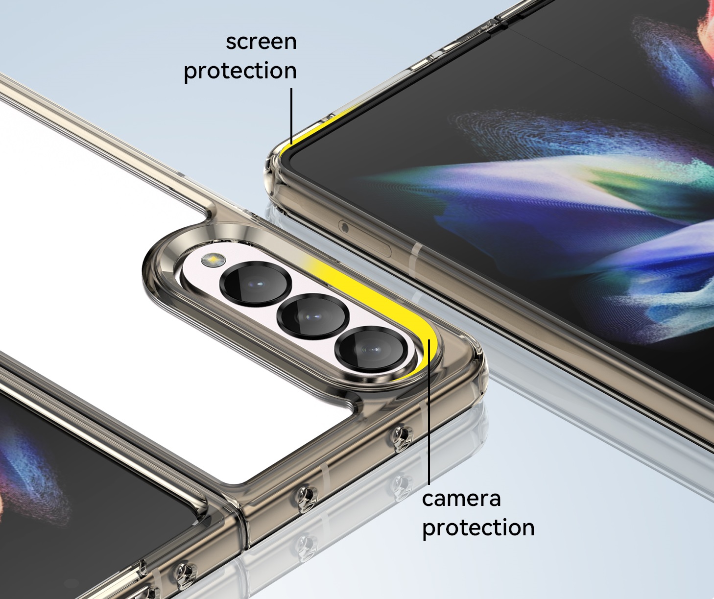 Защитный, противоударный чехол с усиленными боковыми рамками серого цвета для дисплея на телефон Samsung Galaxy Z Fold3 от Caseport, серия Fusion