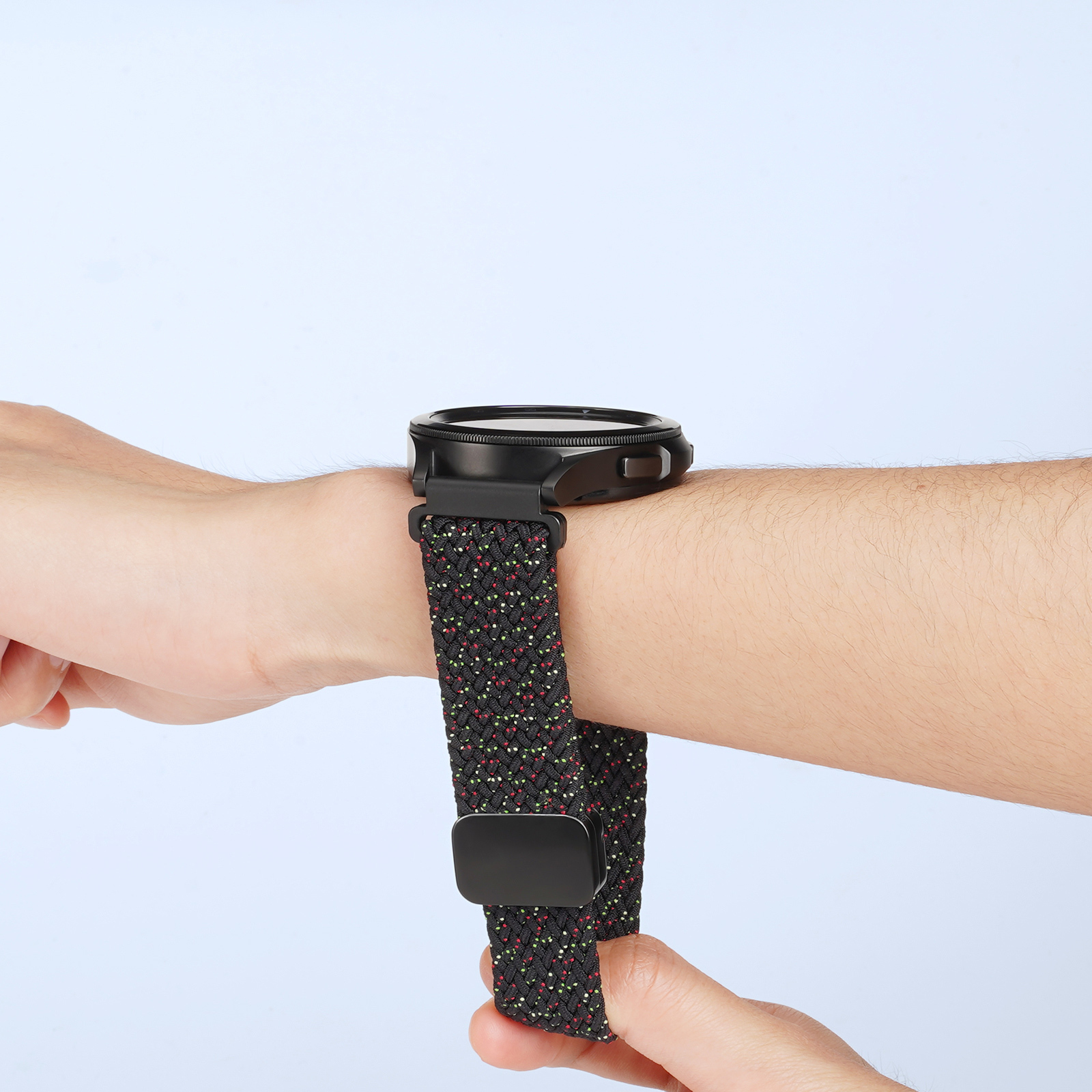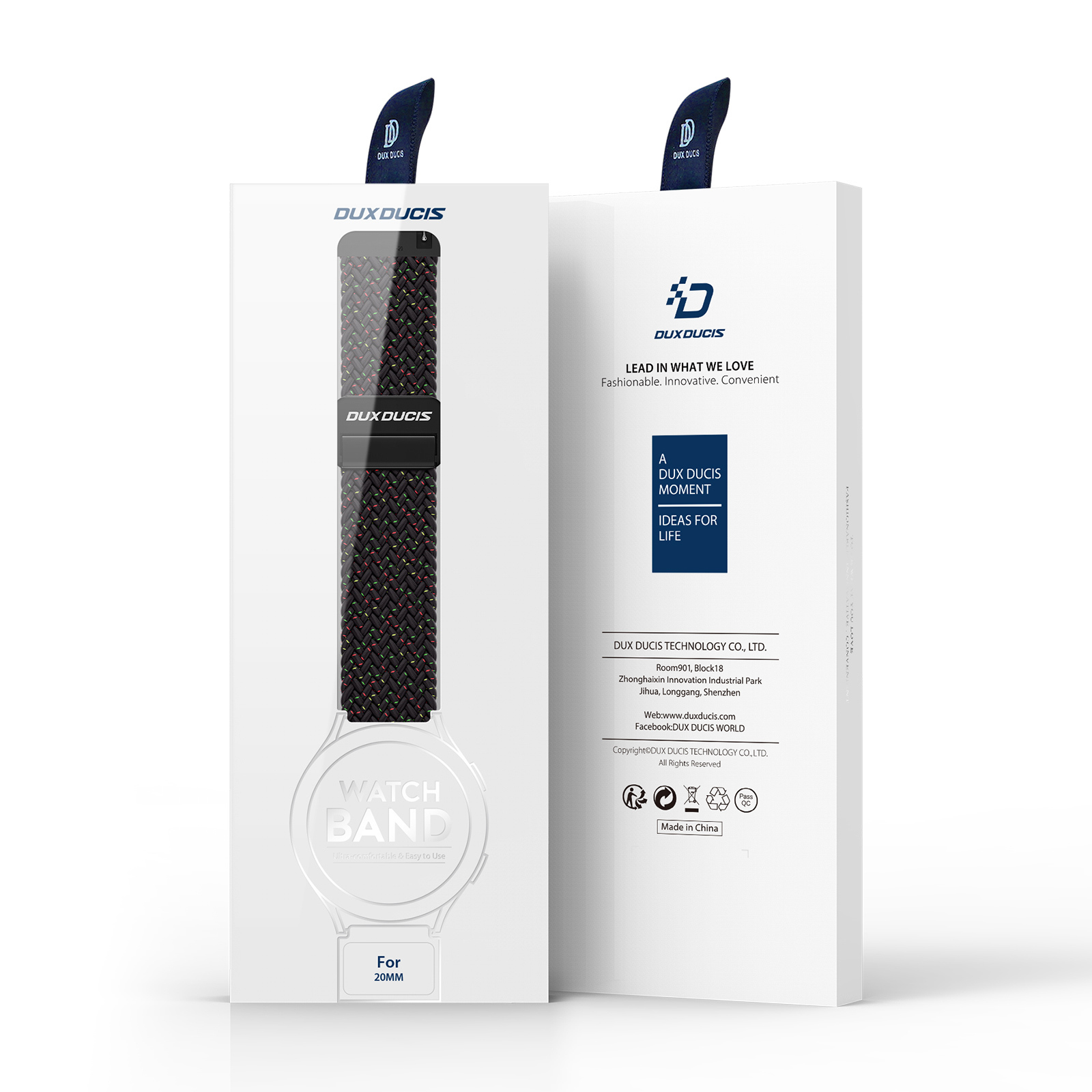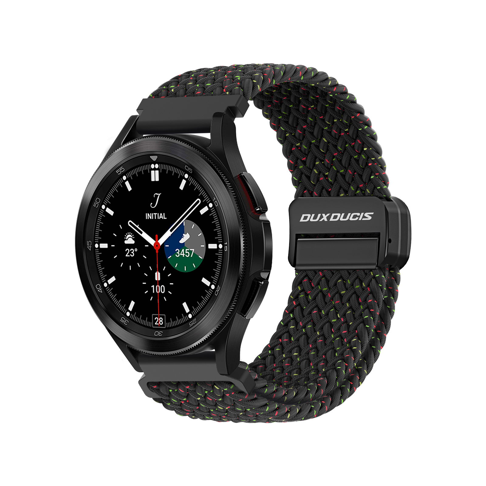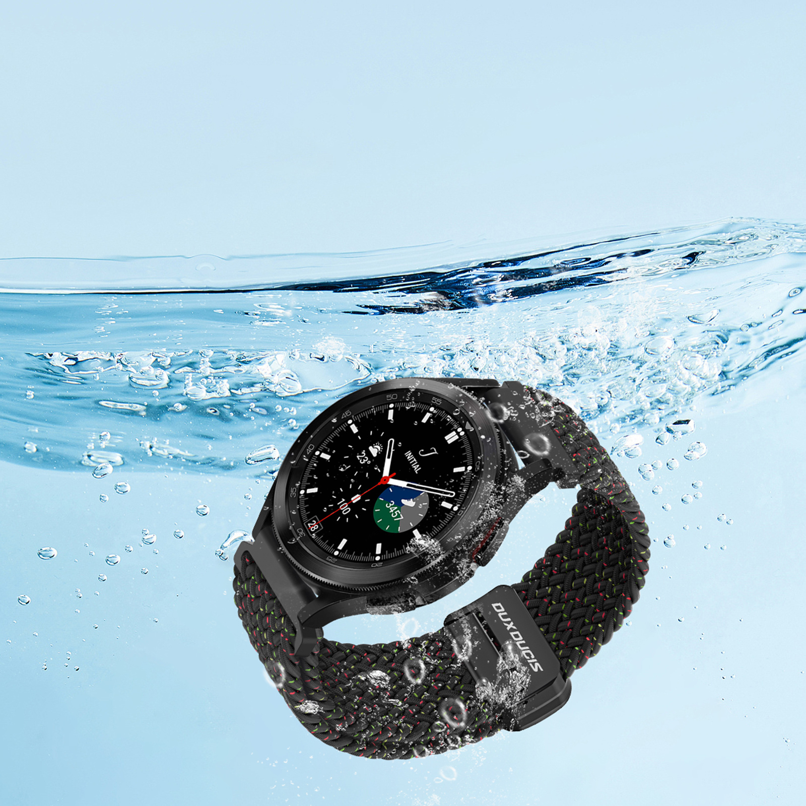 Ремешок для смарт часов Samsung Galaxy Watch 3, 4, 5, 6 и 7 (размер крепления 20мм) серии Mixture Pro Series от Dux Ducis из высокоэластичного нейлонового плетения черного цвета (Black Unity).