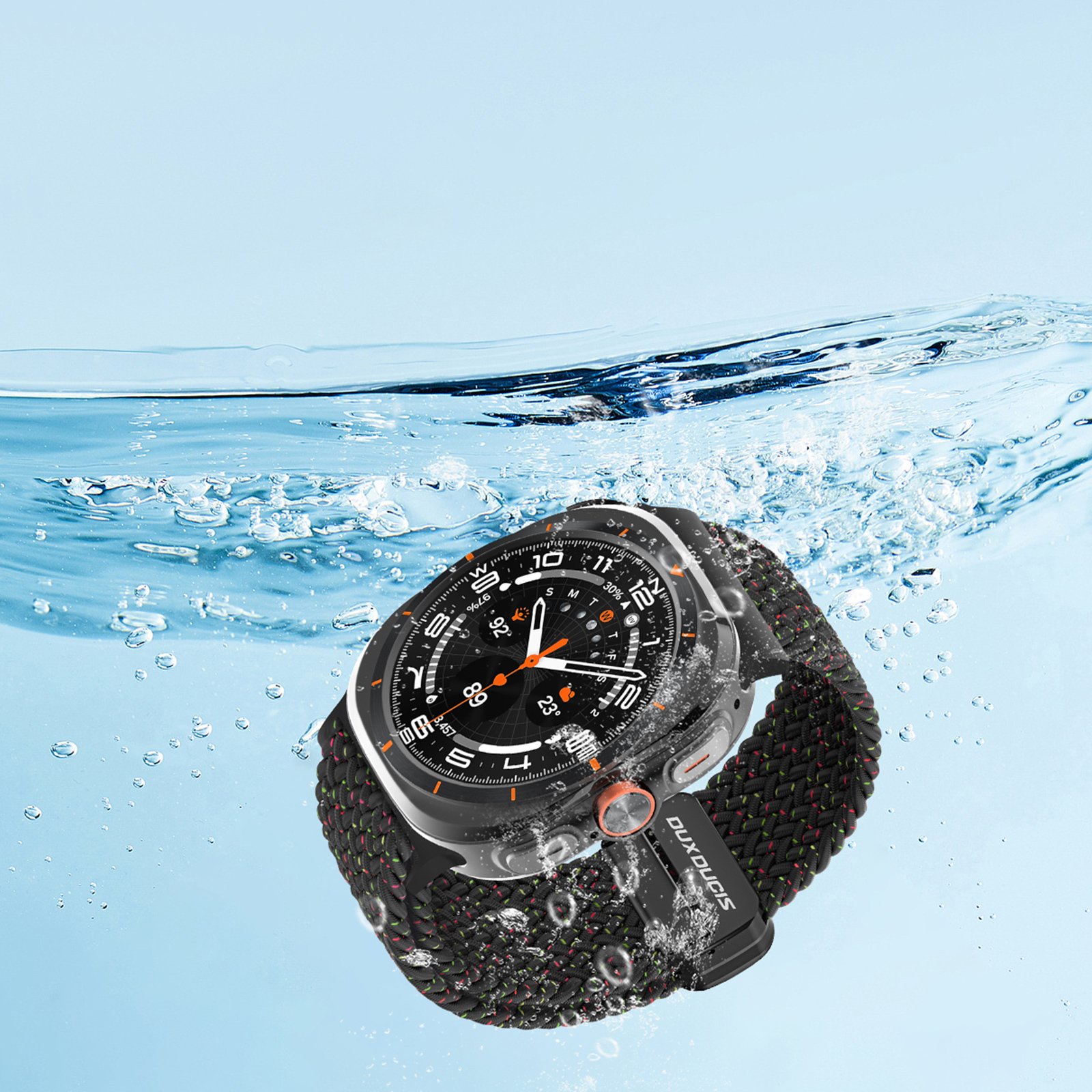 Ремешок для Samsung Watch Ultra 47MM серии Mixture Pro Series от Dux Ducis из высокоэластичного нейлонового плетения черного цвета (Black Unity).