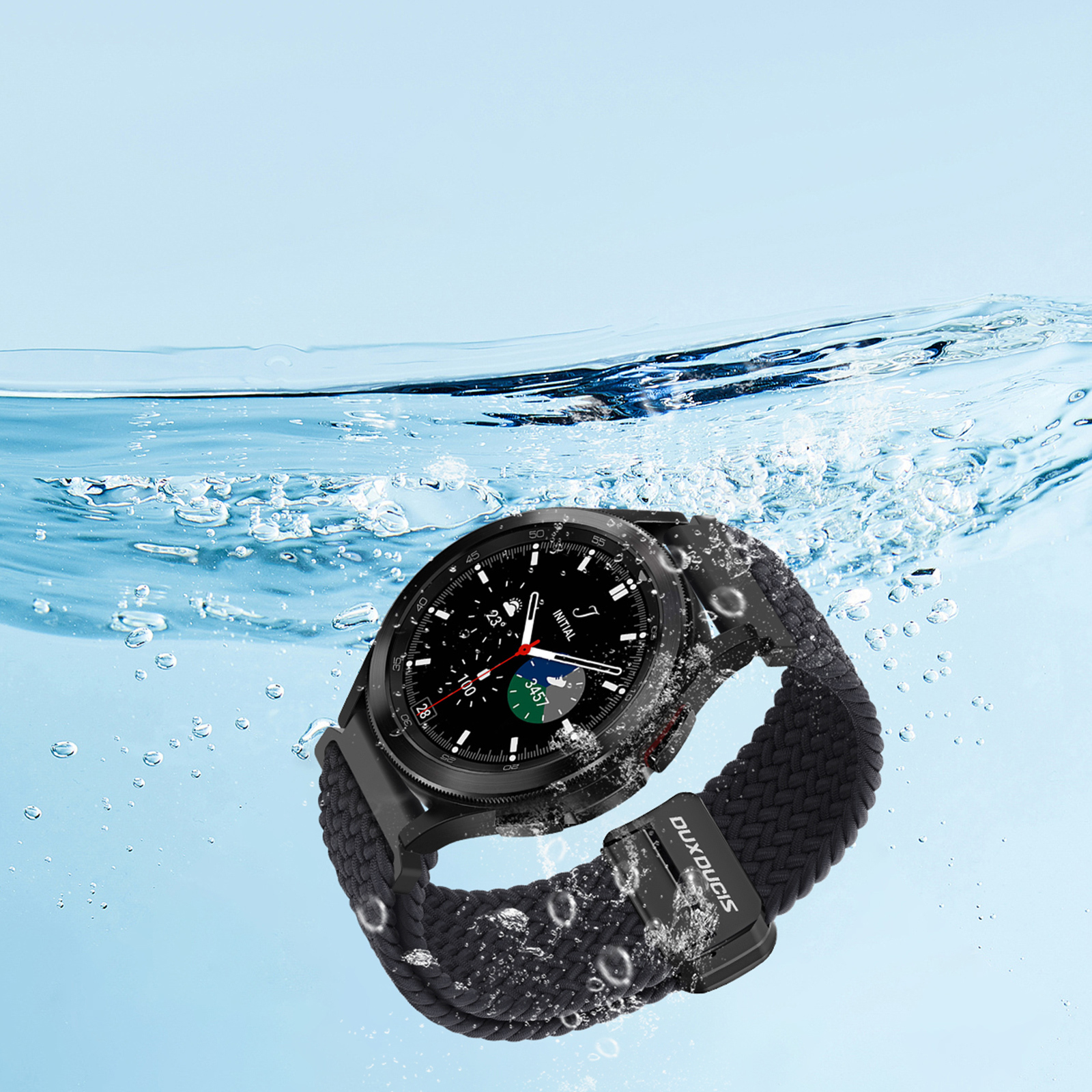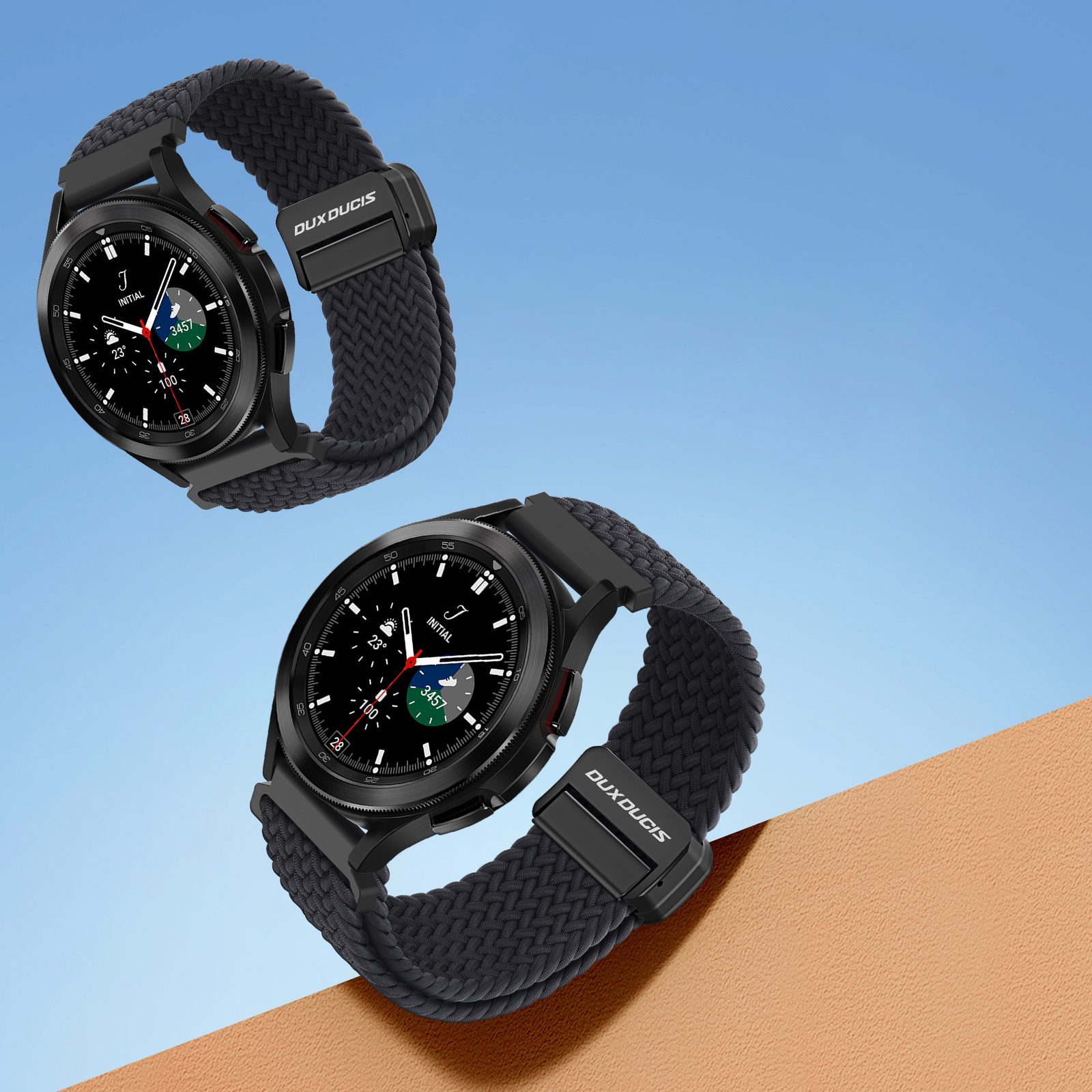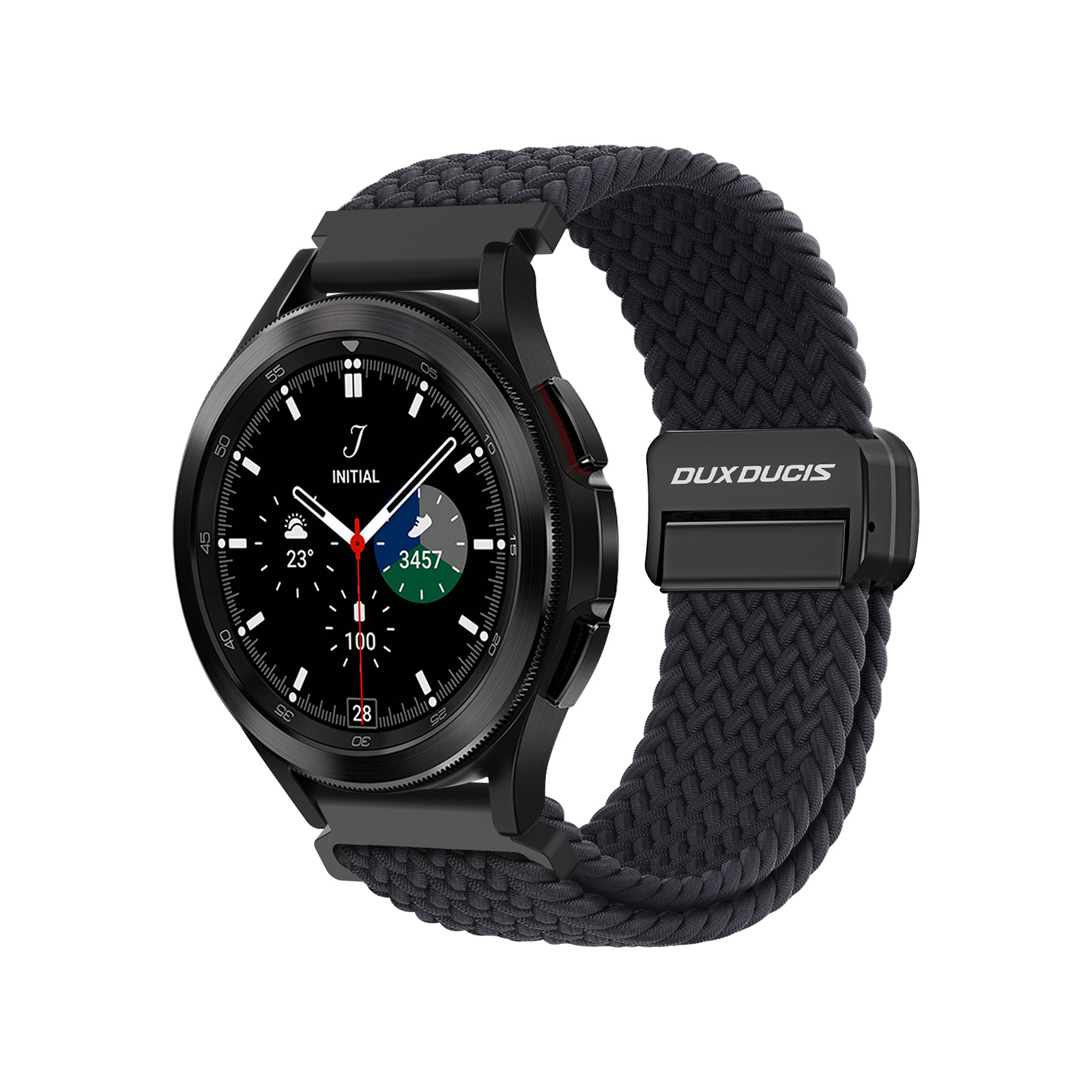 Ремешок для смарт часов Samsung Galaxy Watch 3, 4, 5, 6 и 7 (размер крепления 20мм) серии Mixture Pro Series от Dux Ducis из высокоэластичного нейлонового плетения черного цвета (Midnight).