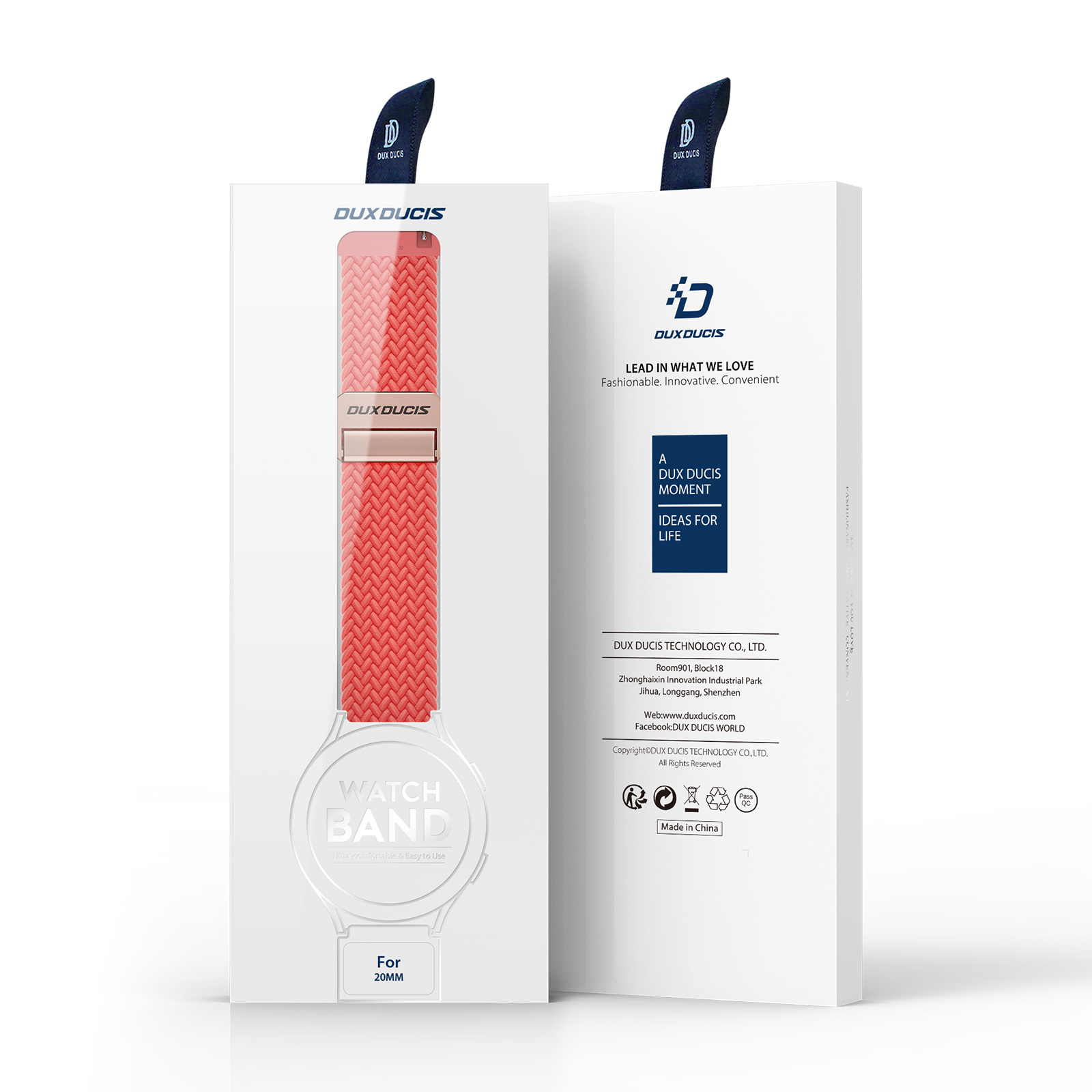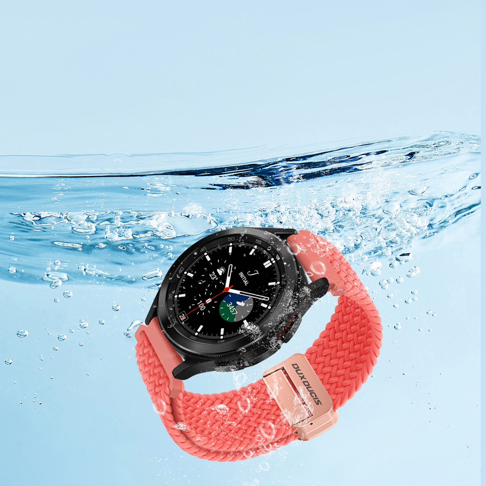 Ремешок для смарт часов Samsung Galaxy Watch 3, 4, 5, 6 и 7 (размер крепления 20мм) серии Mixture Pro Series от Dux Ducis из высокоэластичного нейлонового плетения красного цвета (Guava).