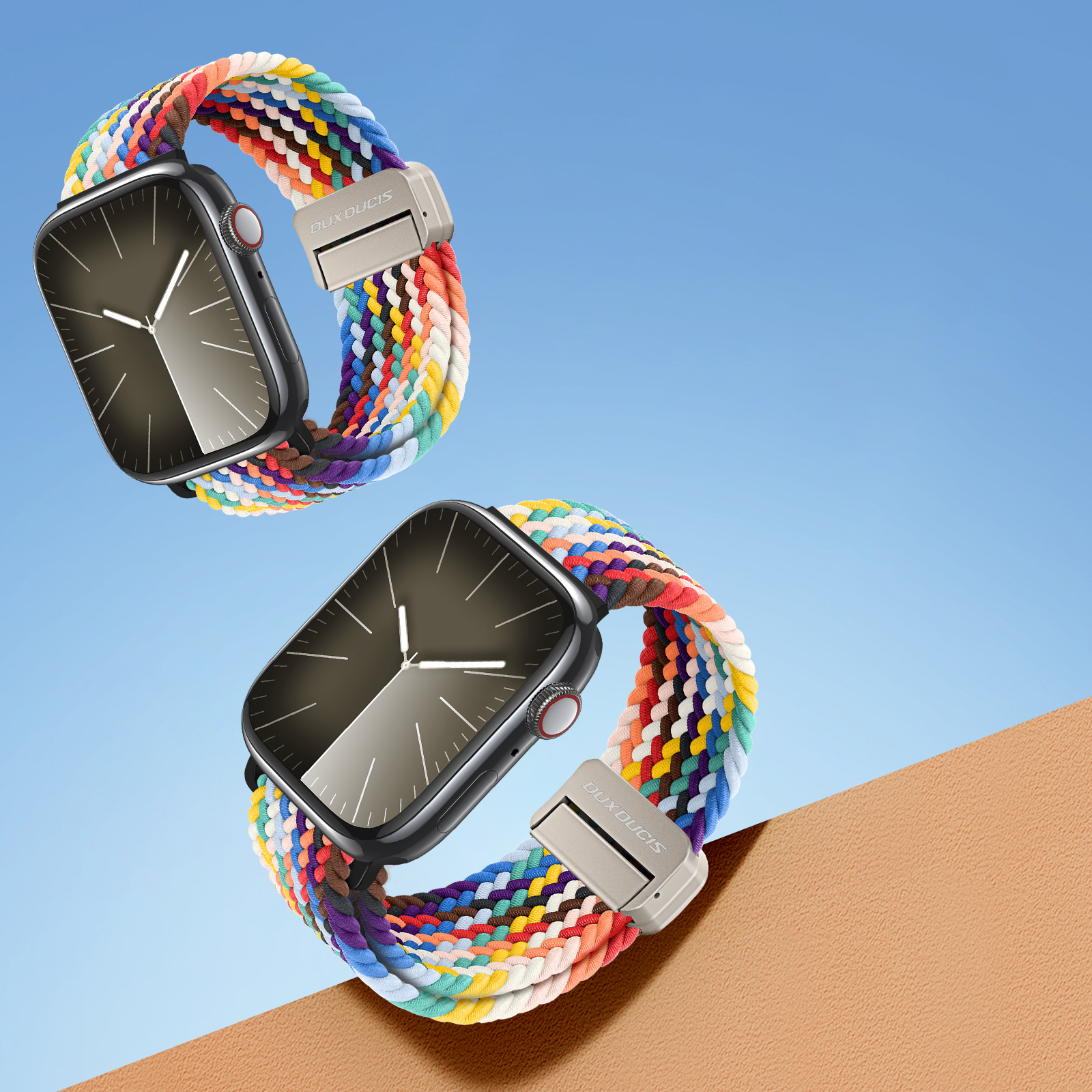 Ремешок для Apple Watch размером 42, 44, 45, 46 и 49MM серии Mixture Pro Series от Dux Ducis из высокоэластичного нейлонового плетения разноцветный (Rainbow).
