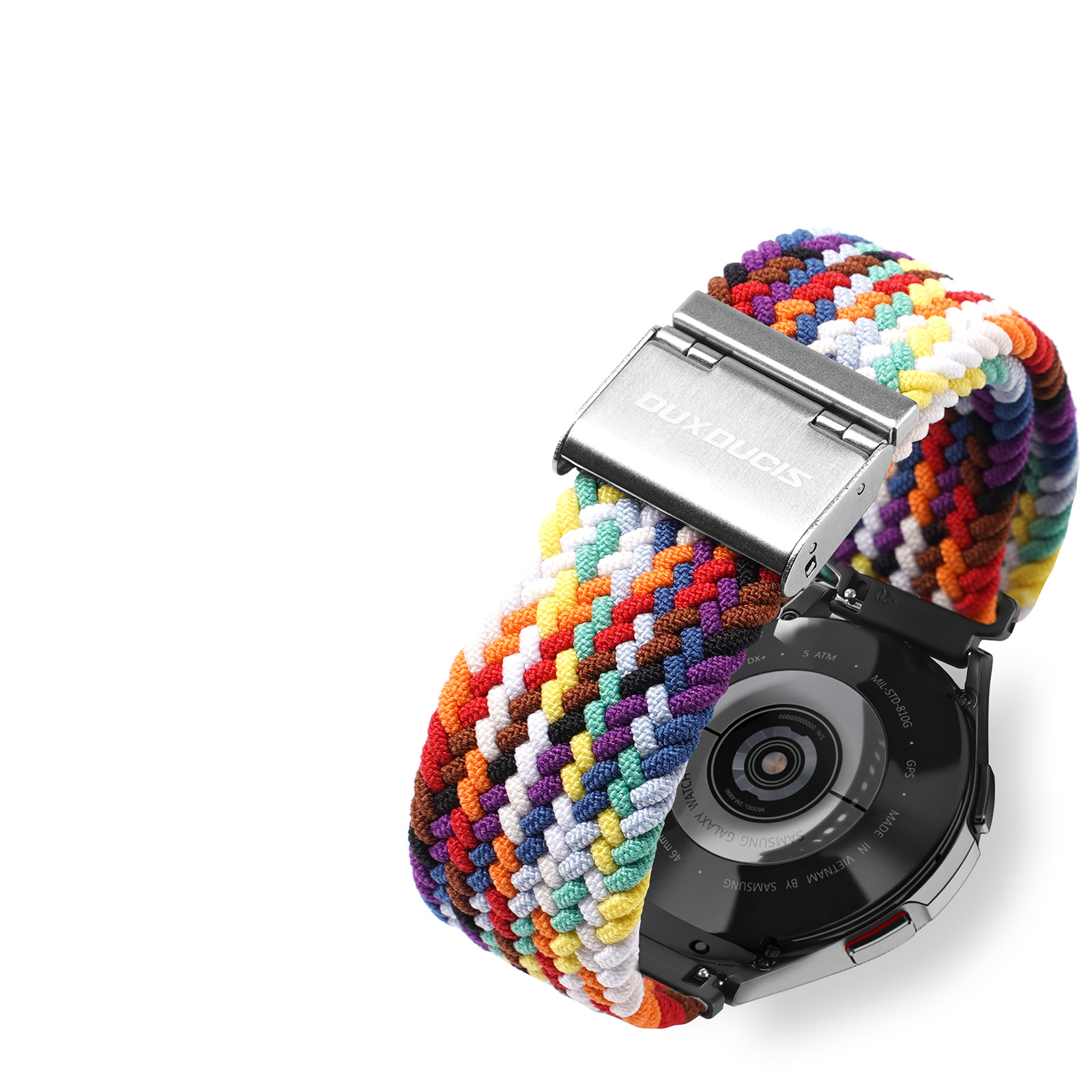 Ремешок для смарт часов Samsung Galaxy Watch 45 и 46мм (размер крепления 22мм) серии Mixture II Series от Dux Ducis из высокоэластичного нейлонового плетения разноцветный (Rainbow).