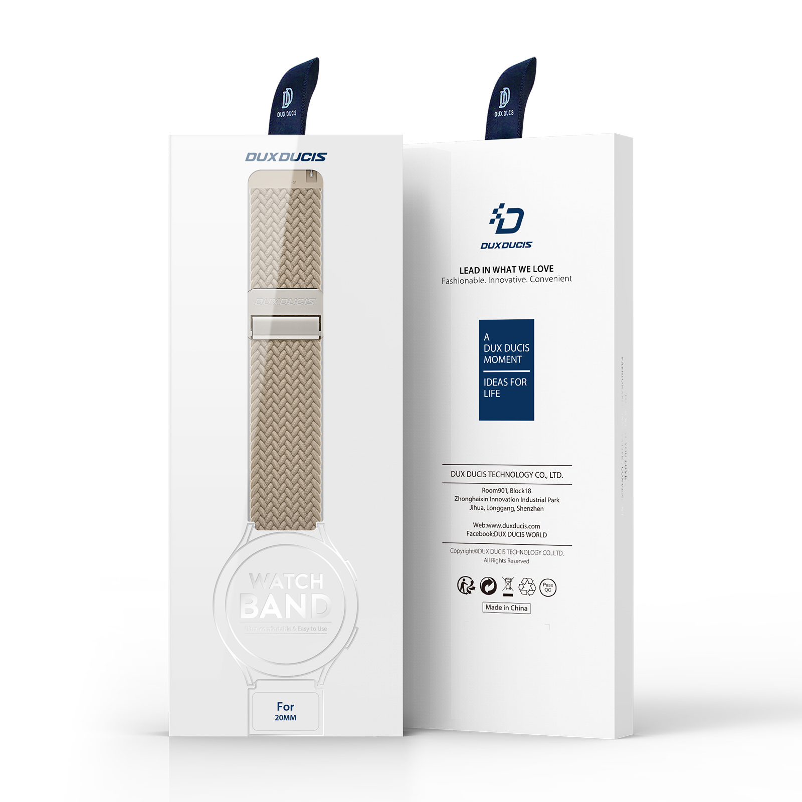 Ремешок для смарт часов Samsung Galaxy Watch 3, 4, 5, 6 и 7 (размер крепления 20мм) серии Mixture Pro Series от Dux Ducis из высокоэластичного нейлонового плетения серого цвета (Beige).