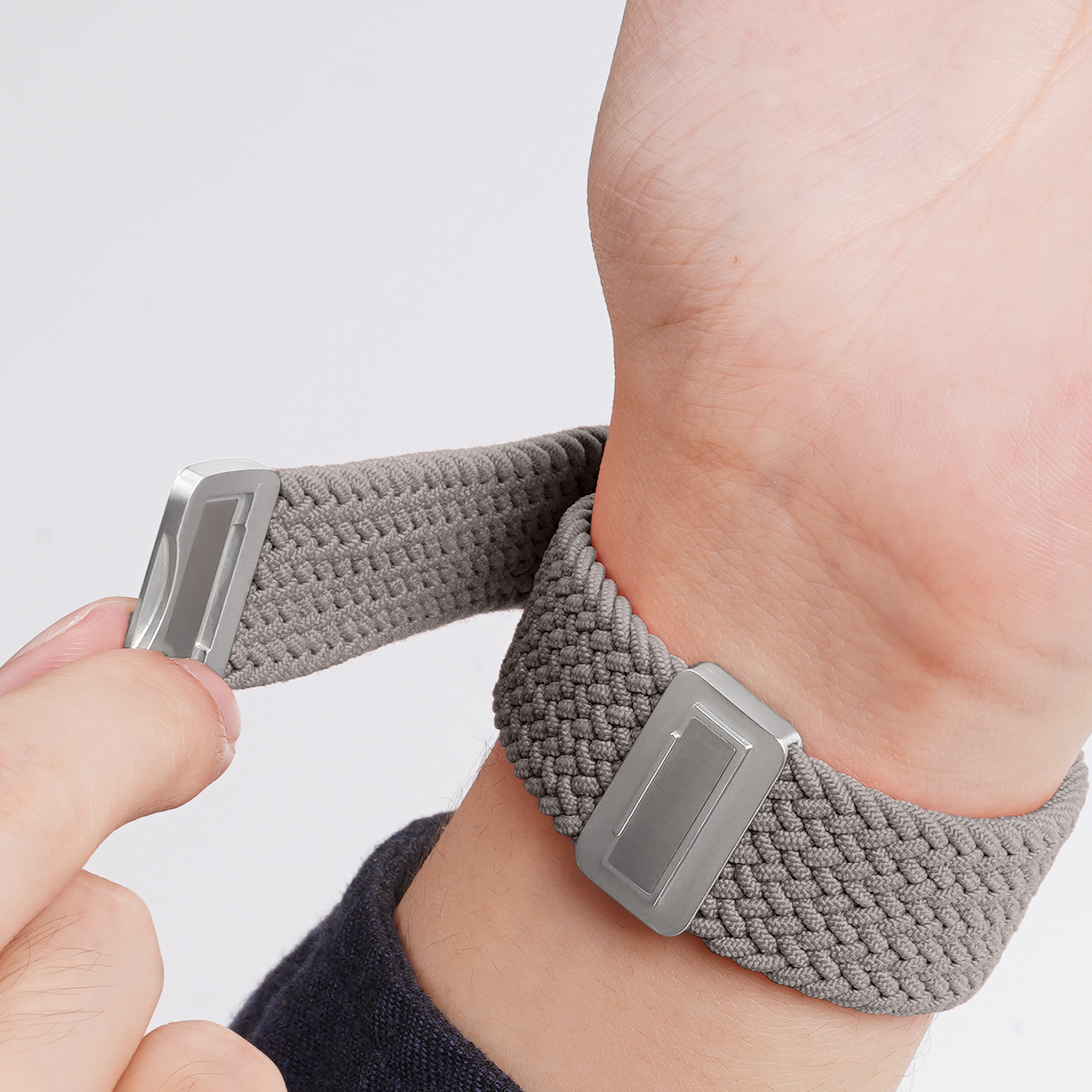 Ремешок изготовлен из высокоэластичной нейлоновой ткани темно-серого цвета (Clay) для Apple Watch размером 38, 40, 41 и 42мм серии Mixture Ultra Series от Dux Ducis. Ткань сотканная с помощью нового 4-мерного метода плетения, обладает отличной эластичностью, высокой устойчивостью к складкам, мягкостью, легкостью и хорошей воздухопроницаемостью, что лучше, чем у традиционных тканей.
