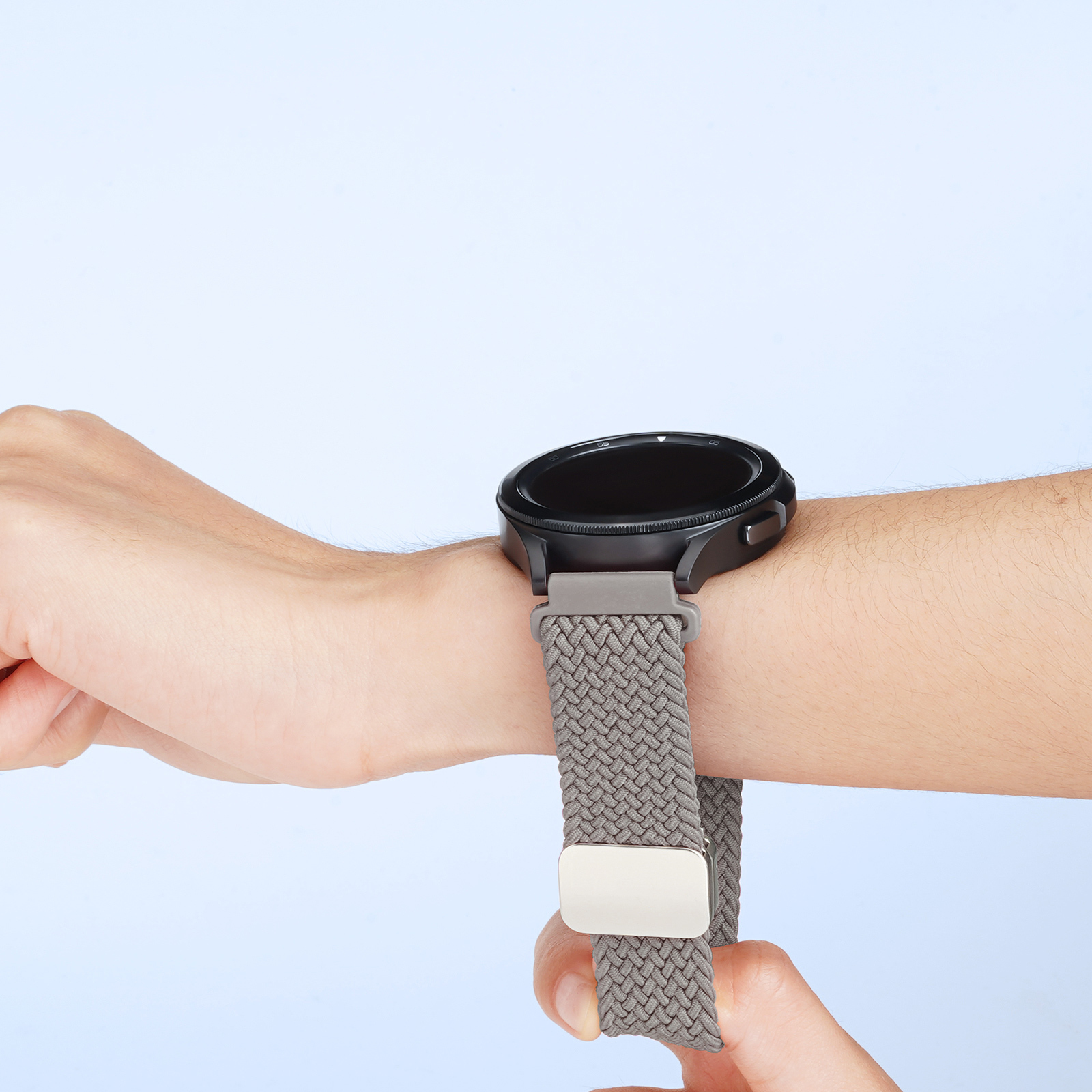 Ремешок для смарт часов Samsung Galaxy Watch 3, 4, 5, 6 и 7 (размер крепления 20мм) серии Mixture Pro Series от Dux Ducis из высокоэластичного нейлонового плетения темно-серого цвета (Clay).