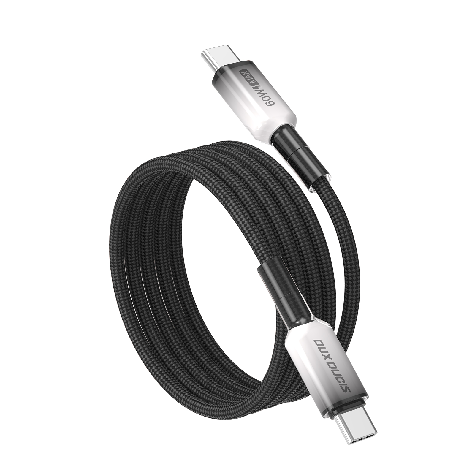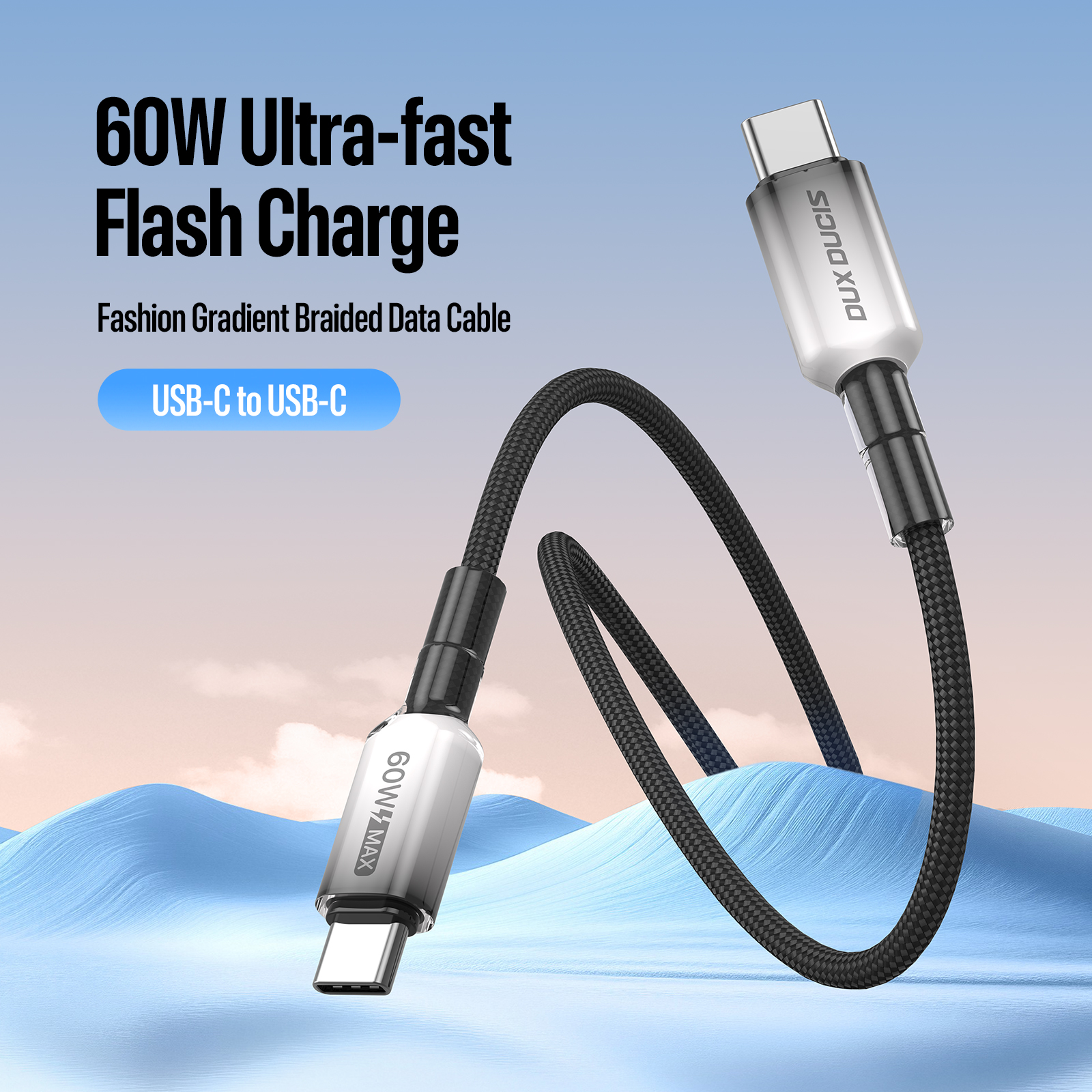 Плетеный кабель с градиентным разъемом черного цвета для быстрой зарядки 60W, длина 100см (1м) с разъемом Type C на Type C, серия WLCM Series от Dux Ducis