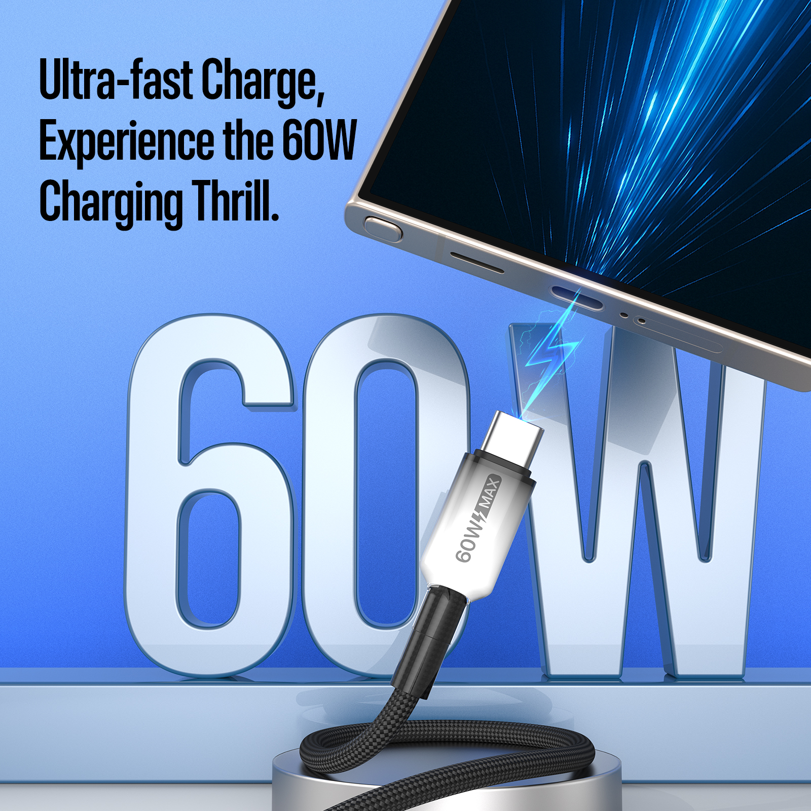Прочная нейлоновая оплетка, усиленная конструкция, протестированная на более чем 10 000 изгибов. Синхронизация данных 480 Мбит/с, быстрая передача файлов во время зарядки. Градиентный дизайн, стильный прозрачный разъем с современным внешним видом. Широкая поддержка USB-C, совместим с телефонами, планшетами и ноутбуками.