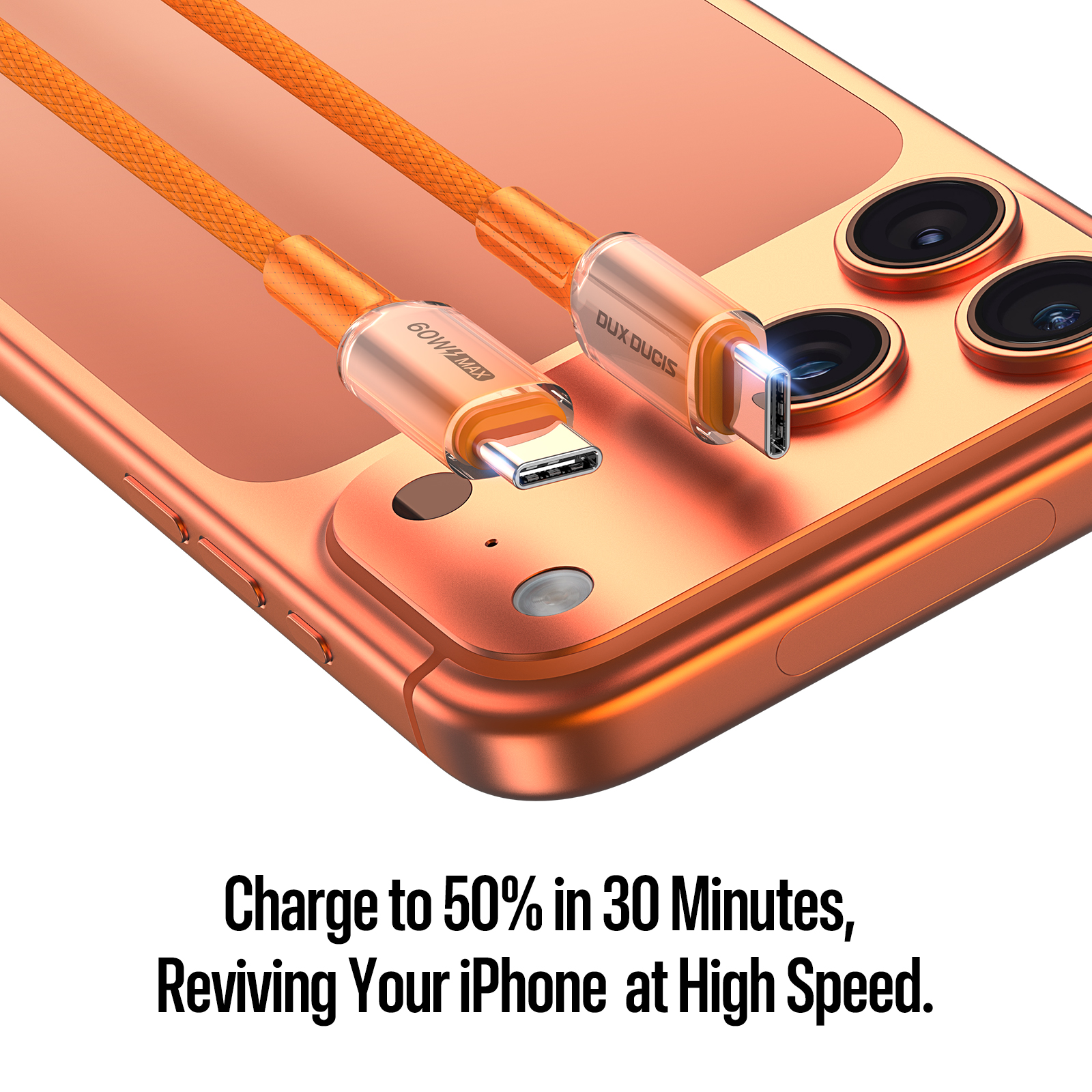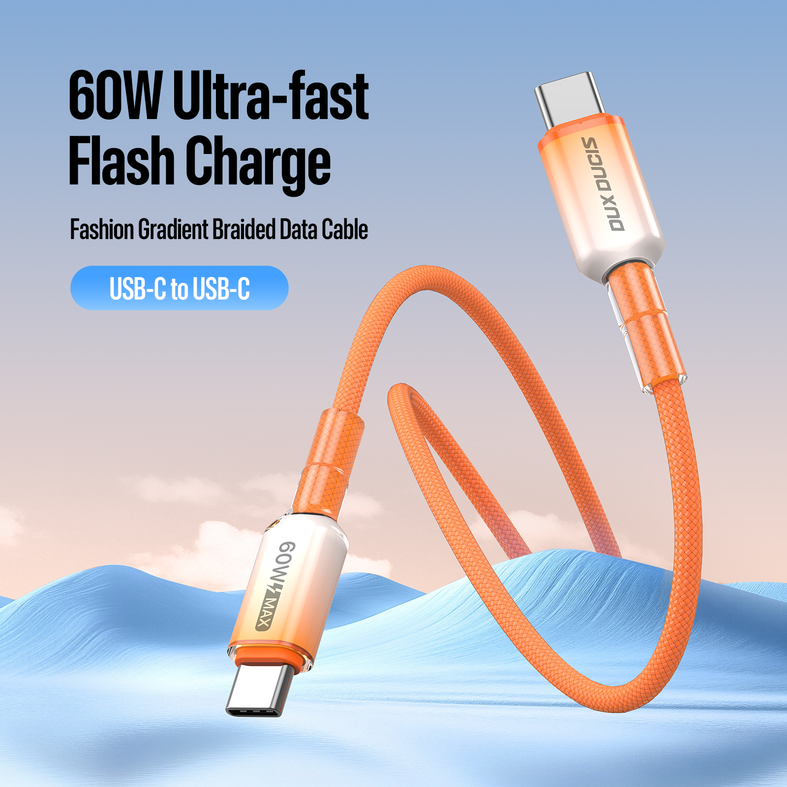 Плетеный кабель с градиентным разъемом оранжевого цвета для быстрой зарядки 60W, длина 100см (1м) с разъемом Type C на Type C, серия WLCM Series от Dux Ducis